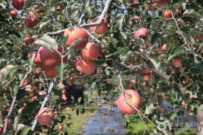 팔공산 올레길은 총 8개 코스로 개발이 되어 있고 그 중 4코스 평광동 왕건길은 [효자강순항나무-평광초교-평광지-모영재-재바우농원-첨백당-평광종점 정류장]으로 이어지는 길이다. 단양우씨의 집성촌인 평광동은 대구 사과의 명맥을 이어오고 있는 곳이기도 하다. 평광동 입구에서 시작하여 신숭겸 장군을 추모하는 영각인 모영재에 이르는 길이 왕건의 도피로로 추정되며, 왕건임도라는 별칭을 갖고 있다. 평광동에는 이야기가 있는 나무가 많다. 평광동 입구에서는 효자 강순항을 기려 그의 이름을 딴 효자강순항나무가 서 있다. 첨백당에 들어서면 1945년 해방을 기념하여 민초들이 심은 광복소나무가 위풍당당하게 자리해 있다. 광복소나무의 뒤편으로는 단양우씨의 재실인 첨백당이 있다. 우효중의 효행과 우명식의 충성심을 기려 1896년에 세운 건물이다. 첨백당 위편 재바우농원에서는 우리나라 최고령 홍옥나무를 볼 수 있으며 수령은 90세 정도이다. 보통 사과나무는 20~30년 정도 되면 생산성이 현저히 떨어져 새로운 사과나무로 대체된다지만 이 나무는 아직까지도 생산량이 다른 사과나무들 못지 않다고 한다. 10월말~11월 중순까지는 사과 수확기다. 올레꾼을 위해 이 나무는 가장 늦게 수확을 한다. 대구올레 팔공산길을 운영하고 있는 대구녹색소지자연대의 안내에 의하면 전체적으로 그늘이 적은 코스이며 한여름은 피하고 사과꽃이 피는 4월말, 사과가 열리는 10월 말에 가보길 추천하며 전구간 농로길로 흙길은 없다. 자전거, 유모차 등의 통행이 가능하다. 단지 이동시 차량주의를 요한다.
