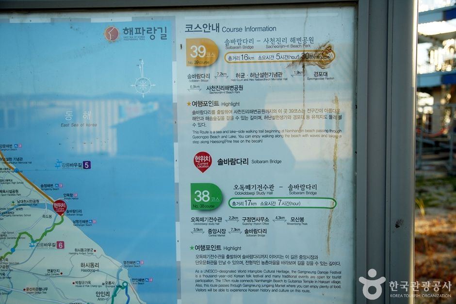 예부터 동대문 밖 강릉이라는 말이 있다. 동대문 밖을 나가서는 강릉이 가장 살기 좋다는 뜻인데, 강릉은 삶과 문화와 예술이 함께 어우러진 도시다. 강릉 바우길 6구간 굴산사 가는 길은 남항진해변에서 시작하여 청량동 입구, 중앙시장, 모산봉, 장현저수지를 지나 학산오독떼기전수관을 도착하는 코스이다. 소요 시간은 7시간 정도 걸리며, 코스난이도는 중급에 해당한다.