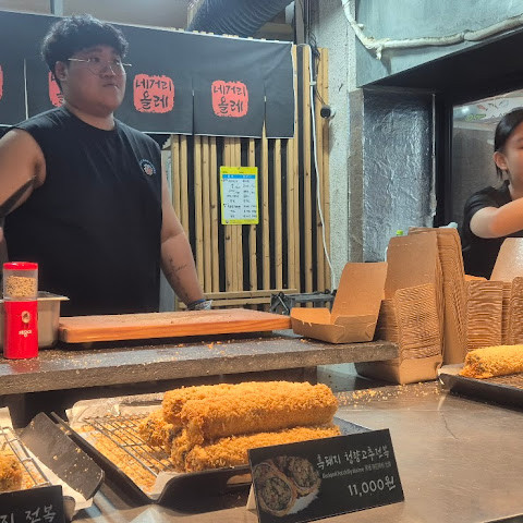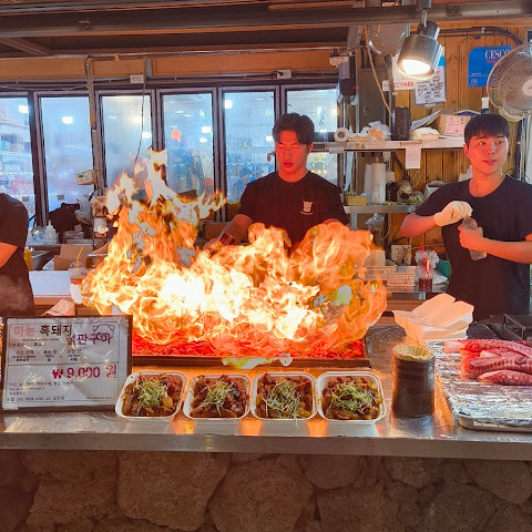 다양한 현지 음식을 탐험하고 맛보기에 좋은 곳입니다. 시장에는 길거리 음식, 간식, 그리고 전통 제주 특산품부터 갓 만든 디저트와 음료까지 모든 것을 판매하는 작은 노점들이 놀랍도록 어우러져 있습니다. 활기 넘치는 분위기와 어디를 봐도 좋은 향기가 가득합니다.