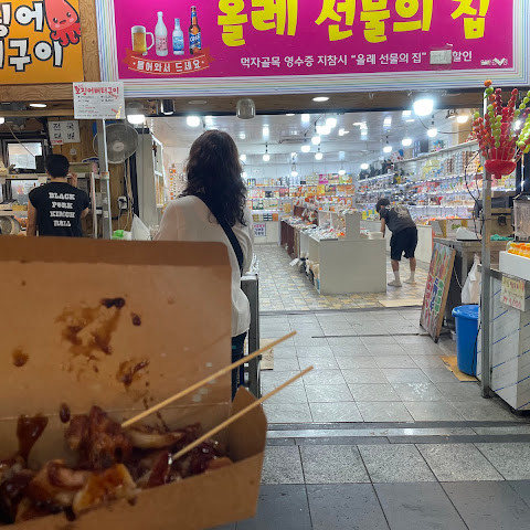 "괜찮은" 현지/관광 시장이라 솔직히 방문할 가치는 없습니다. 주로 기념품 선물 세트, 과일, 건어물, 채소, 그리고 "길거리 음식"을 판매합니다. 관광객으로서 일부러 어딘가에 간다면 좀 더 많은 것을 기대했을 겁니다. 하지만 어린아이와 어머니와 함께라서 경치를 즐기는 여행자는 아니고, 크루즈 여행을 하다 보니 시간이 매우 제한적이었기 때문에 가까운 현지 시장을 골라 길거리 음식을 먹고 쇼핑을 좀 했습니다. 음식은 괜찮아 보이지만, 사람이 많아서 신선하지 않다는 것을 알 수 있습니다. 기념품으로 다음 단계에서 과일을 가져갈 수 있다면, 제주도에서 재배하는 오렌지가 아주 맛있을 것 같습니다. 하지만 아쉽게도 제철이 아니어서 주스만 살 수 있었습니다. 괜찮긴 하지만 꼭 방문할 만한 곳은 아닙니다. 북쪽에 더 큰 시장이 있고, 평범한 길가에서도 경치가 멋집니다. 대신 유명한 풍경을 보러 갔어야 했습니다.