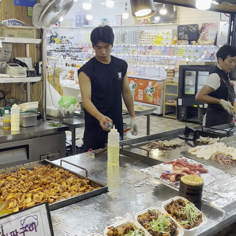 정말 분위기 최고였어요!! 음식은 제가 서울에서 가본 많은 마트보다 훨씬 맛있었어요. 해산물도 신선했고요. 사람이 엄청 많고 더워서 땀 뻘뻘 흘릴 각오를 하셔야 해요. 쓰레기통도 없어서 집에 갈 때까지 쓰레기를 보관해야 했어요.