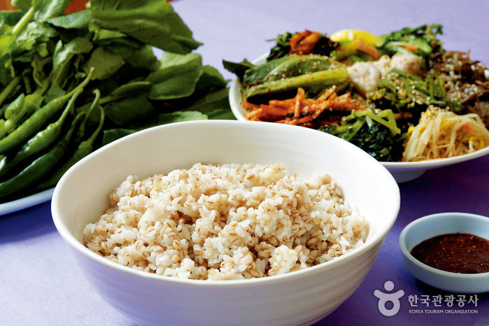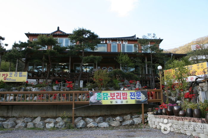 무등산을 찾는 사람이라면 꼭 한 번 들러 맛 보라 하는 보리밥 집이 있는데, 이곳이 바로 그 집이다. 탱글탱글 구수한 보리밥과 달달한 배추 그리고 매운맛 좋은 고추에 주인이 직접 시골에서 가져 왔다는 갖가지 반찬들과 된장, 신선한 도토리묵에 동동주까지 이 집의 보리밥 정식 1인분은 그야말로 한 상 제대로 푸짐하다. 산행을 마치고 허기를 달래기에 좋은 집이다.