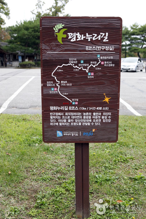 [평화누리길 8코스] 반구정에서 화석정까지는 농촌의 들판과 야산이 펼쳐지는 코스로 대자연의 풍광을 마음껏 즐길 수 있다. 야산을 올라 장산전망대에 오르면 임진강하구에 펼쳐지는 초평도와 기정동마을, 개성공단 등의 북녘땅을 관찰 할 수 있다. [코스 난이도 : 하]