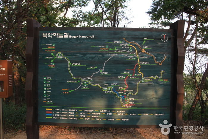 코스안내하늘교(88m)~북카페(110m)~하늘전망대(239m)~호경암(365m)~남마루(600m)~솔바람교(226m)~서마루(412m)~성북천발원지