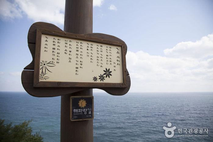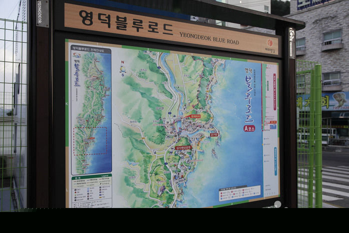[영덕 블루로드] A코스는 영덕대게의 집산지인 강구항에서 시작한다. 주변 해안의 풍광과 물빛이 아름다운 강구항에서 고불봉을 지나면 이국적인 풍경의 풍력발전소(신재생에너지전시관)를 볼 수 있다. 빛의 거리를 거쳐 우리나라 최고의 해안 드라이브 코스 상에 위치하고 있는 해맞이공원까지 약 17.5km에 이르며 도보로 6시간 정도 소요된다.