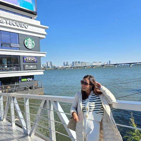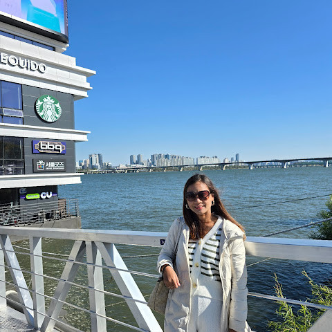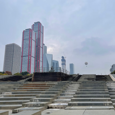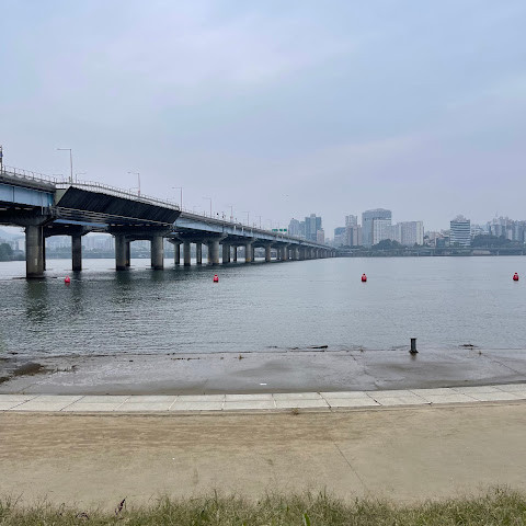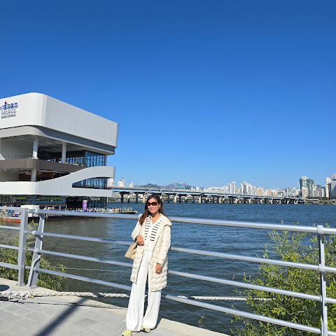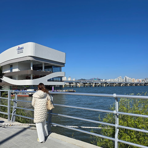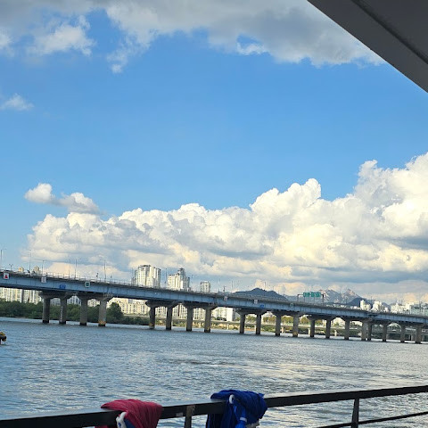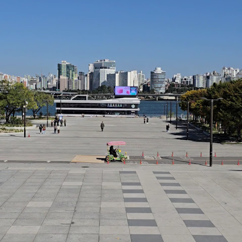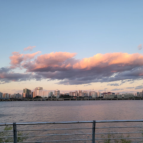 리버사이드의 한가운데에 있다는 점이 마음에 들어요. 서울의 다른 지역이 내려다보이고, 시원한 바람과 사람들이 앉아서 즐길 수 있는 의자가 있어요. .. 많은 사람들이 거기서 피크닉하는 것도 봤어요. 거기에는 수상 상점들이 몇 개 있어요... CU 라면 도서관... 리버사이드에서 맛있는 국수를 먹을 수 있어요!