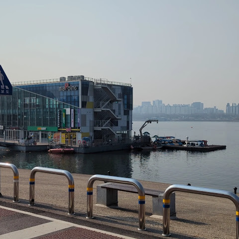 강변에 있는 좋은 곳이에요. 망원시장에서 길거리 음식을 사서 여기서 먹을 수도 있어요.