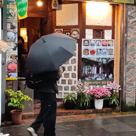 비 오는 날 잠깐 들렀던 곳이에요. 직원분께 뭘 먹어야 할지 조언을 구했어요. 그래서 한국 전통 허브차, 달콤한 허브차, 그리고 전통 꿀 쿠키를 주문해 봤어요.