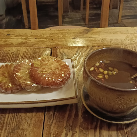 비 오는 날 정말 맛있었어요. 꿀 쿠키는 생각보다 양이 많았고, 너무 달았어요. 주문한 차와 함께 먹으면 딱 좋았어요. 안에는 한국 전통 좌식 공간이 있었어요.