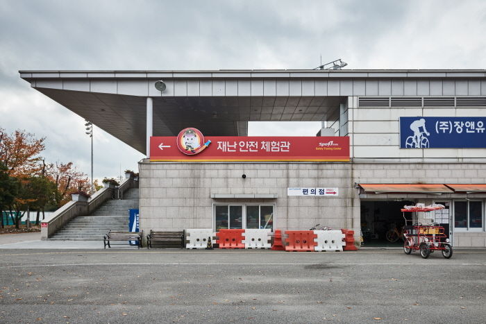 부산시 경륜공단은 15일 테니스 센터코트 지하 1층의 유휴공간 854㎡를 활용하여 ‘재난 안전 체험관’을 만들어 2008년 10월 17일에 문을 열었다.재난안전체험관은 재난체험시설(지진체험관, 연기체험관, 소화기작동 체험관, 응급처지 체험관)과 교육 전시시설(오리엔테이션홀, 재난역사 전시관, 생활안전전시관) 등으로 나뉘어 모두 7개 주제의 공간으로 구성되어 있다.체험관은 전직 소방관 등으로 구성된 자원봉사자 12명이 재난 및 안전에 대한 안내 및 설명을 진행하게 된다. * 오리엔테이션 홀입장객들은 재난 안전 체험관에 들어서면 먼저‘오리엔테이션 홀’에서 재난의 종류에 대해 비디오 학습을 하게 된다.태풍 홍수 지진 해일 산불 등의 자연 재난과 화재 폭발 붕괴 등 각종 사고 등에 대해 동영상을 통해 배우게 된다. * 재난역사전시관 국내외의 대표적인 재난의 피해와 교훈에 대해 패널을 통해 배울 수 있다. 중국 쓰촨성 지진, 구포열차전복사고, 삼풍백화점 붕괴사고, 911테러, 대구 지하철 화재사고 등의 끔찍한 참사현장을 현장 사진과 함께 할 수 있다. * 응급처치 체험관 응급처치의 중요성, 응급상황 시 행동요령 등을 숙지할 수 있으며, 심폐소생훈련용 ‘인형’을 통해 심폐소생술을 직접 체험해볼 수 있다. 전문 강사가 직접 지도하여 생생한 체험이 될 수 있게 해 주며 이밖에 불에 데었을 때, 팔 다리가 부러졌을 때 등의 응급상황에 대한 대비 요령도 배울 수 있다. * 연기체험관 이곳에서는 화재현장과 같은 상황을 만든 다음, 출구를 찾아 탈출하는 요령을 직접 배울 수 있도록 만들었다. 체험관 내부는 꼬불꼬불한 미로 형태로 만들어졌으며 화재가 발생하여 모든 전등이 꺼져 캄캄한 내부에 연기발생기에서 뿜어져 나오는 연기가 미로를 채우게 되면 입장객들은 피난 유도등을 따라 출구를 찾아 대피하는 체험을 할 수 있다. * 생활안전전시관 일상 생활공간에서 흔히 일어날 수 있는 안전사고에 대한 예방법을 패널을 통해 학습할 수 있는 공간이다.수영장이나 집 안에서의 안전사고는 물론 전기나 가스, 승강기 안전사고에 이르기까지 각종 유형의 사고에 대한 유형과 대비법을 배울 수 있다. * 소화기체험관 직접 소화기를 사용해 볼 수 있도록 구성된 공간이다. 대형스크린 상에 화재발생현장을 화면으로 재현하면 불이 난 곳을 향해 분말 대신 물이 발사되는 소화기를 직접 작동시켜볼 수 있다. 소화기는 실제분말소화기처럼 안전핀을 뽑아야 물이 발사된다. * 지진체험관 지진시뮬레이터를 이용하여 실제 지진 발생시의 흔들림을 체험할 수 있다. 부엌을 형상화한 공간에 직접 들어가 상하좌우로 흔들리는 지진을 1분가량 직접 체험하며 지진발생시 행동요령(탁자 밑 대피 등) 등을 익힐 수 있도록 구성되어 있다.