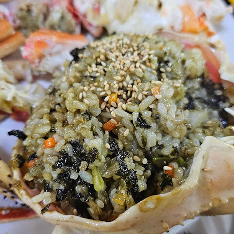 가게의 게살은 탱글탱글하고 신선하며 달콤하고, 게알볶음밥/셀프바는 종류가 적지만 맛있습니다.