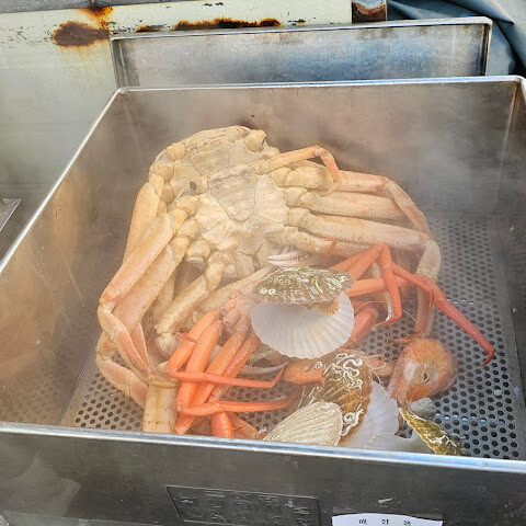 신선하고 맛있는 해산물을 마음껏 즐겨보세요! 다양한 종류의 게 외에도, 수류탄만 한 크기의 전복과 먹장어를 강력 추천합니다. 가격도 정말 저렴해요. 해산물을 구매하신 후 2층에서 직접 요리해 드실 수도 있습니다. 신선하고 맛있으니 꼭 드셔보세요.