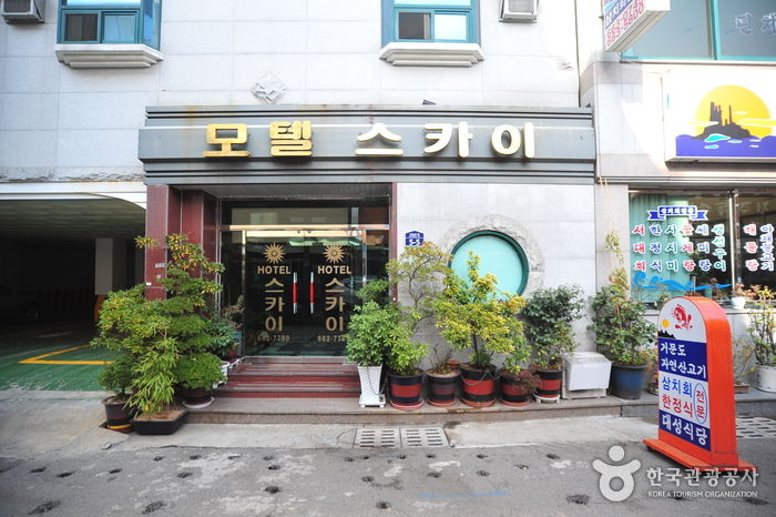여수 연안여객선 터미널과 이순신광장 인근의 스카이모텔은 좌수영음식문화거리에 위치해 있다. 모텔의 외관이나 내부 시설에서 연식이 느껴지지만 여수 원도심에 위치한 지리적 이점은 훌륭하다. 주변으로 상권이 발달되어 있고 맛집이 많아 멀리 가지 않아도 신선한 회를 비롯한 남도의 맛있는 음식을 다양하게 즐길 수 있다.