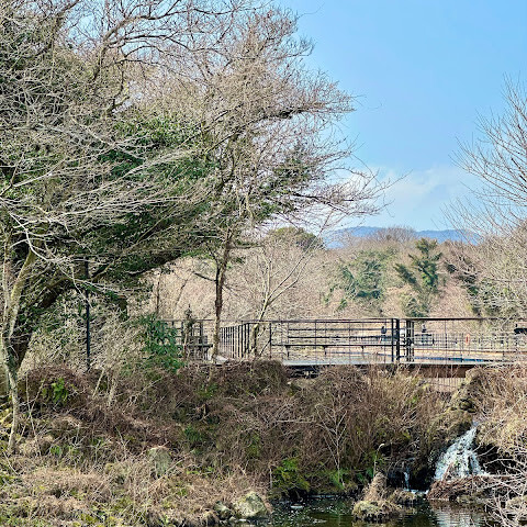 족욕탕 옆에는 분홍빛이 도는 보라색 나무 다리가 있는데, 사진 찍기에도 좋습니다. 더 가면 아기자기한 가게들과 잔디밭, 라벤더 밭(겨울에는 없음)이 나옵니다. 이 구역을 둘러본 후에는 길을 따라 입구로 돌아가거나 4번 역에서 기차를 타고 돌아갈 수 있습니다. 마지막으로 큰 기념품 가게를 구경하며 즐거운 여행을 마무리하세요!