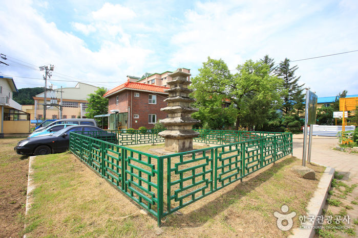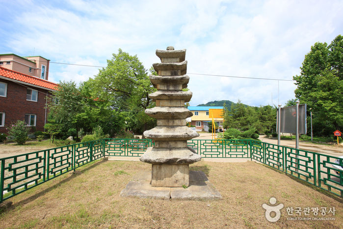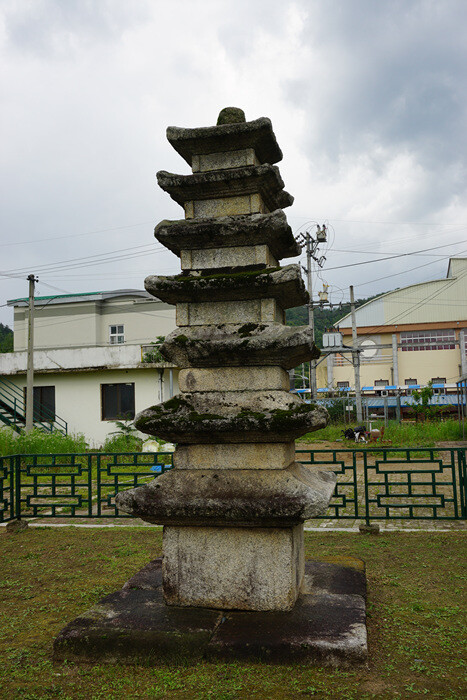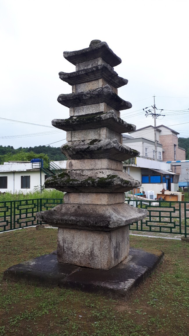 고려시대의 옛 절터에 남아 있는 7층 석탑이다. 기단부재, 탑몸돌, 지붕돌 등이 사방에 흩어져 있던 것을 수습하여 다시 세운 것으로, 지붕돌과 탑신의 1 ·2 ·3층의 몸돌은 원래의 것이고 4층 이상의 몸돌은 1975년 복원할 때 보충한 것이다. 탑의 형태는 커다란 바닥돌 위에 7층의 탑신(塔身)을 올린 모습이다. 탑신의 몸돌은 각 모서리마다 기둥모양을 새겨놓았고, 2층에서 1층에 비해 큰 폭으로 높이가 줄어들다가 그 이후부터는 아주 조금씩 줄어들었다. 지붕돌은 밑면의 받침이 3단씩이며, 처마는 수평을 이루다 네 귀퉁이에서 살짝 치켜 올라갔다. 꼭대기에는 머리장식이 모두 없어지고 둥근 돌 하나만 남아 있다.규모만 작을 뿐, 탑신의 몸돌에 기둥을 조각한 것이나 지붕돌받침이 3단인 점 등이 남계원칠층석탑(국보)과 매우 비슷한 양식과 수법을 보이고 있어 두 탑의 제작연대가 비슷한 시기일 것으로 보인다.