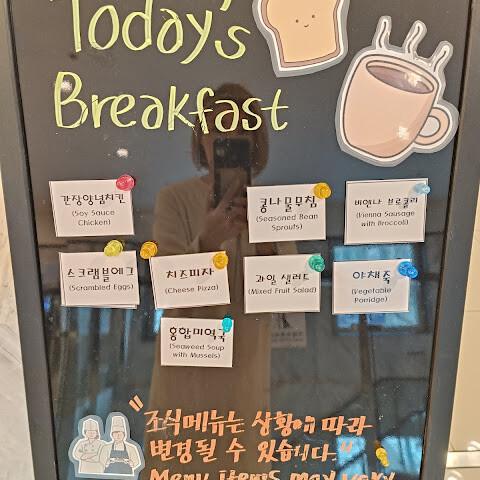 아침 식사는 대부분 맛있고 조리된 음식입니다. 다만 선택지가 매우 제한적입니다. 식물성 우유 대체품은 없습니다. 작은 팁: 시리얼과 오렌지 주스를 함께 먹는 겁니다. 네, 좀 역겹긴 하지만, 괜찮을 거예요 🙃