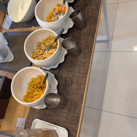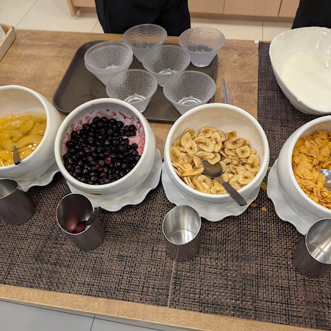 아침 식사는 대부분 맛있고 조리된 음식입니다. 다만 선택지가 매우 제한적입니다. 식물성 우유 대체품은 없습니다. 작은 팁: 시리얼과 오렌지 주스를 함께 먹는 겁니다. 네, 좀 역겹긴 하지만, 괜찮을 거예요 🙃
