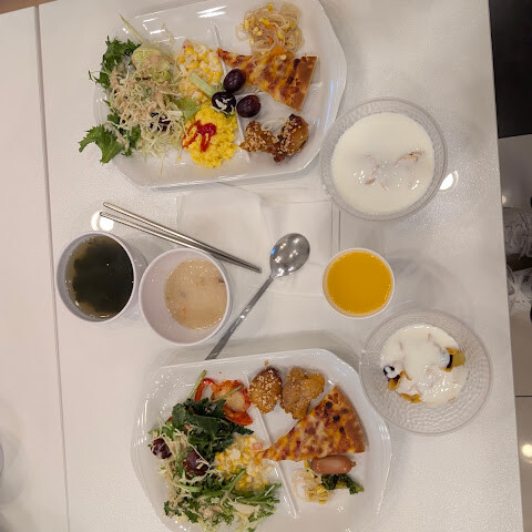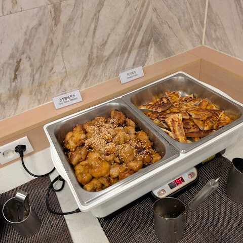 일본의 토요코 인처럼, 이곳도 무료 조식과 세금 환급 혜택을 제공합니다. 카운터에서 프라이드 치킨을 주문할 수 있지만, 판매처가 한 곳뿐이라 푸라닥 프라이드 치킨을 원한다면 배달 앱을 이용해야 합니다. 1층에서는 푸순두의 스파클링 마르게리타를 매장과 같은 가격으로 판매하고 있어 매우 편리합니다. 마르게리타는 탄산이 풍부하고 과일 향이 강해서 더욱 맛있습니다. 병을 딸 때 조심하세요. 동영상을 참고하는 것을 추천합니다. 안 그러면 폭발할 수도 있어요!