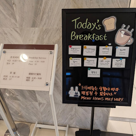조식은 매일 메뉴가 다르지만, 꽤 붐비는 편이라 자리가 날 때까지 기다려야 할 수도 있습니다. 객실 카드 확인은 자주 하지 않는 것 같습니다. 맛있는 한국식 야채 샐러드가 있어서 매일 먹고 있습니다. 커피 머신 종류도 다양하고 오전 10시까지 이용 가능합니다. 방음은 약간 약하지만, 그래도 지체 없이 괜찮습니다. 위치가 정말 좋은데, 서면역에서 아주 가깝습니다. 짐이 많으시면 12번 출구(엘리베이터 있음)를 이용하세요. 짐이 많으시면 10번 출구(에스컬레이터 있음)를 이용하시는 게 좋습니다. 내비게이션에서는 가장 가까운 출구로 8번을 안내할 수도 있습니다. 객실에서 수건과 생수를 교체받을 수 있고, 객실 청소는 3일에 한 번씩 해줍니다. 전반적으로 매우 편리한 숙소이며, 특히 번화한 서면 지역, 그중에서도 바비큐 식당들이 가까워 좋습니다. 호텔에서 번호표를 받고 기다리면 서비스를 받을 수 있습니다.
