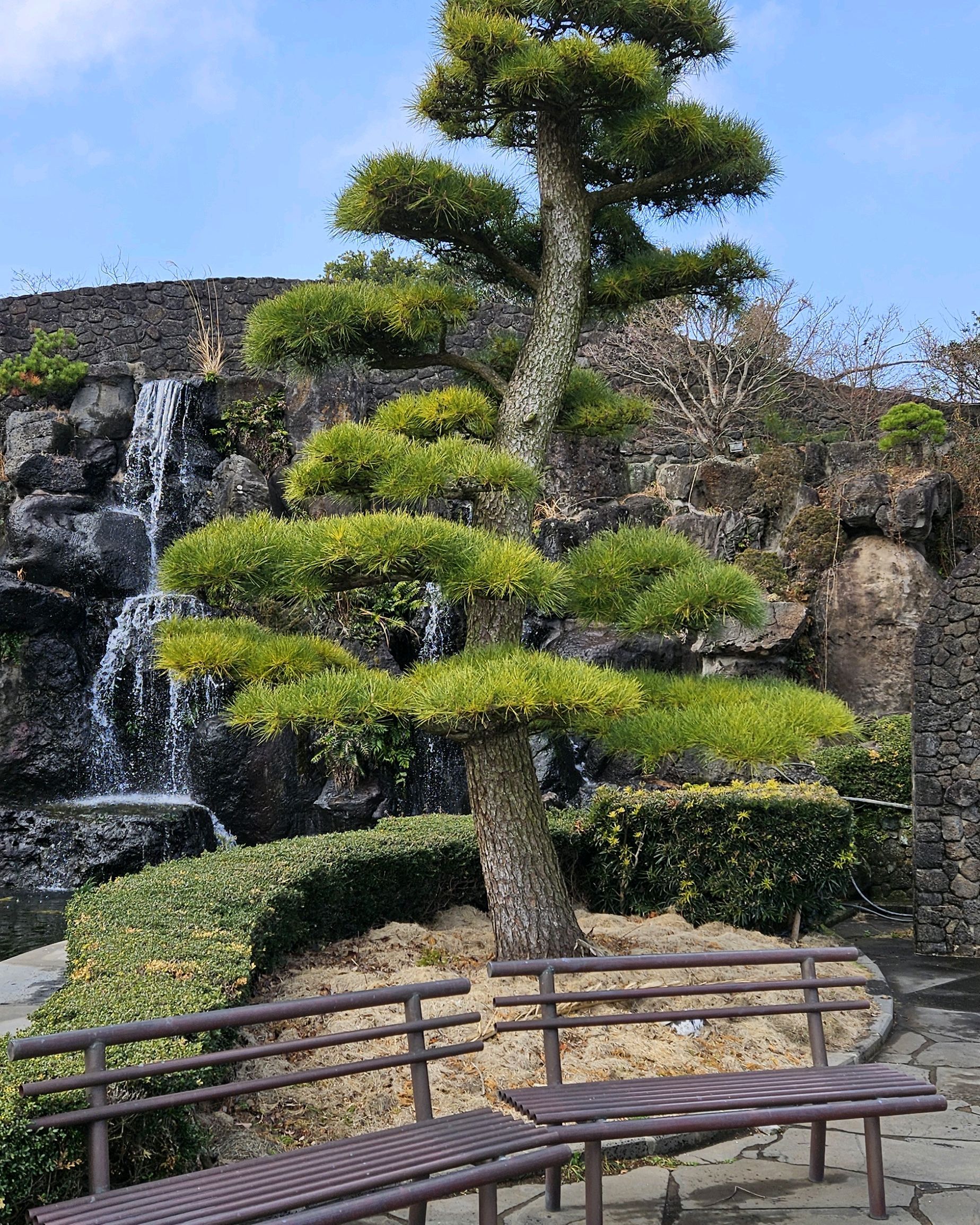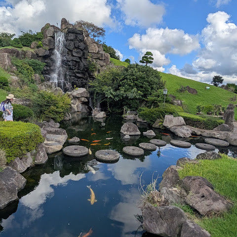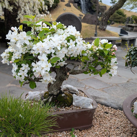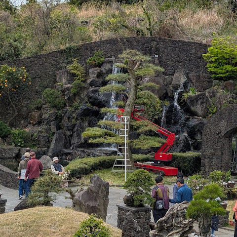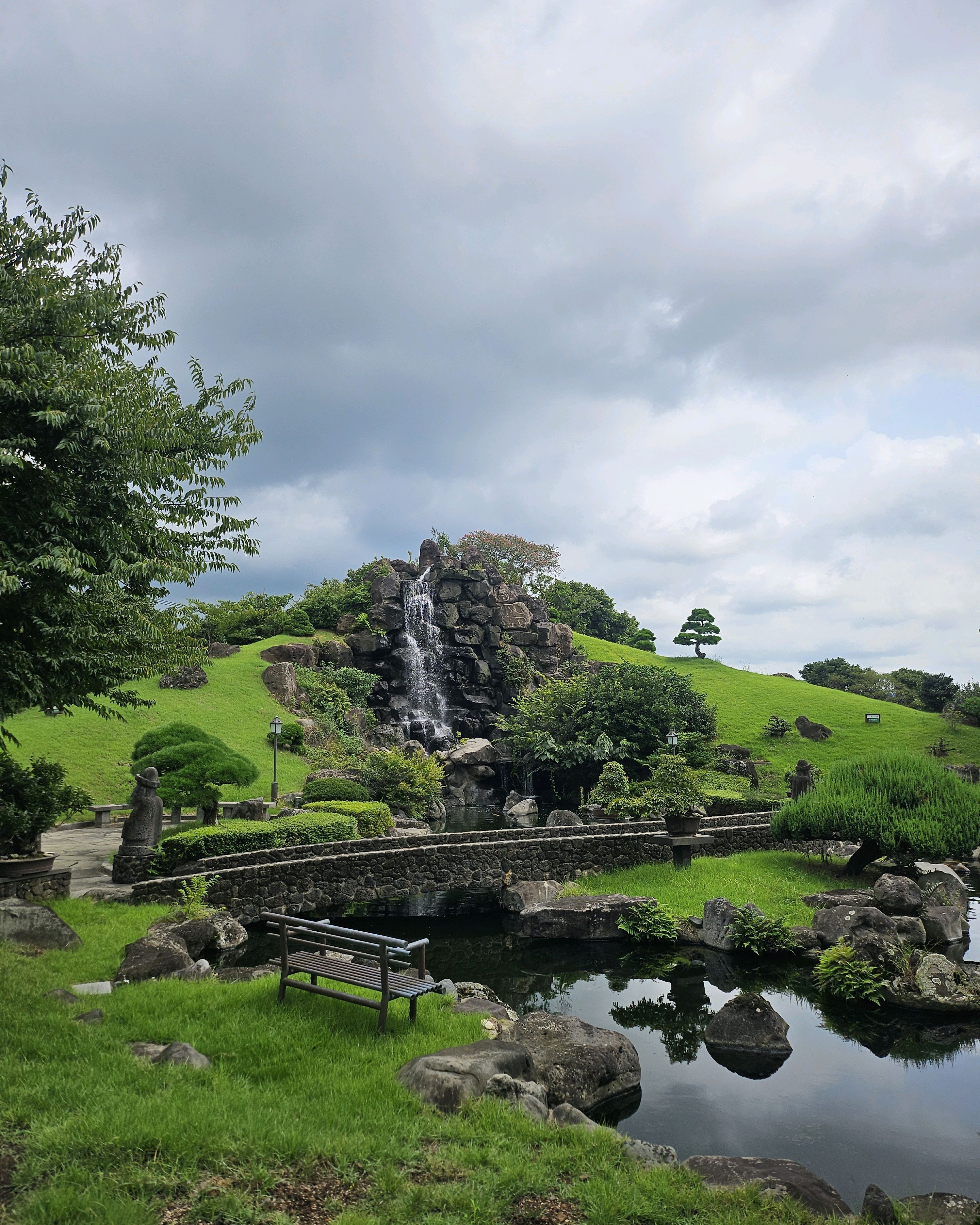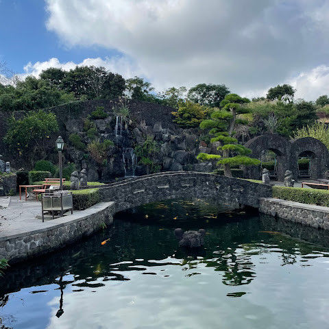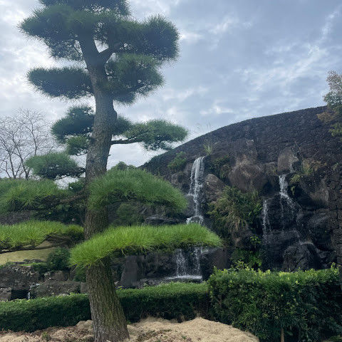 정원은 정말 아름답고 평화로웠습니다. 꽤 넓은 편이었고, 분재 나무, 흥미로운 돌, 연못, 폭포, 그리고 전망대까지 있었습니다. 여유롭게 정원을 둘러보는 데 한 시간 넘게 걸렸습니다. 아주 친절하고 상냥한 주인을 만났습니다.