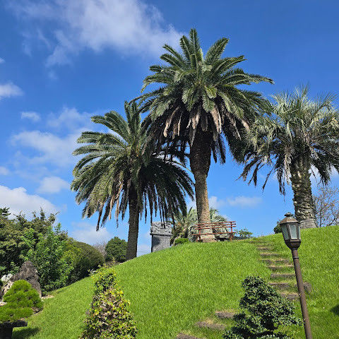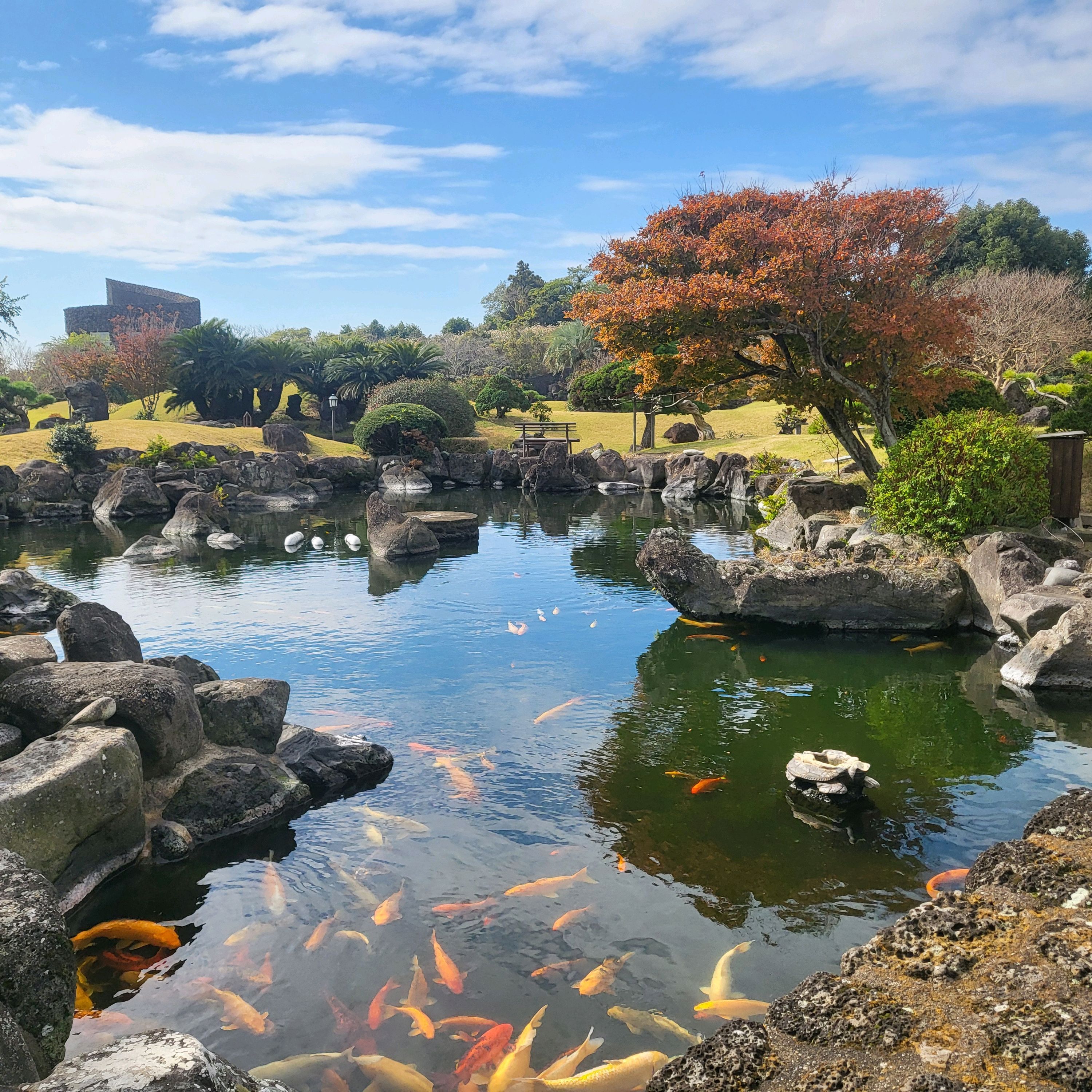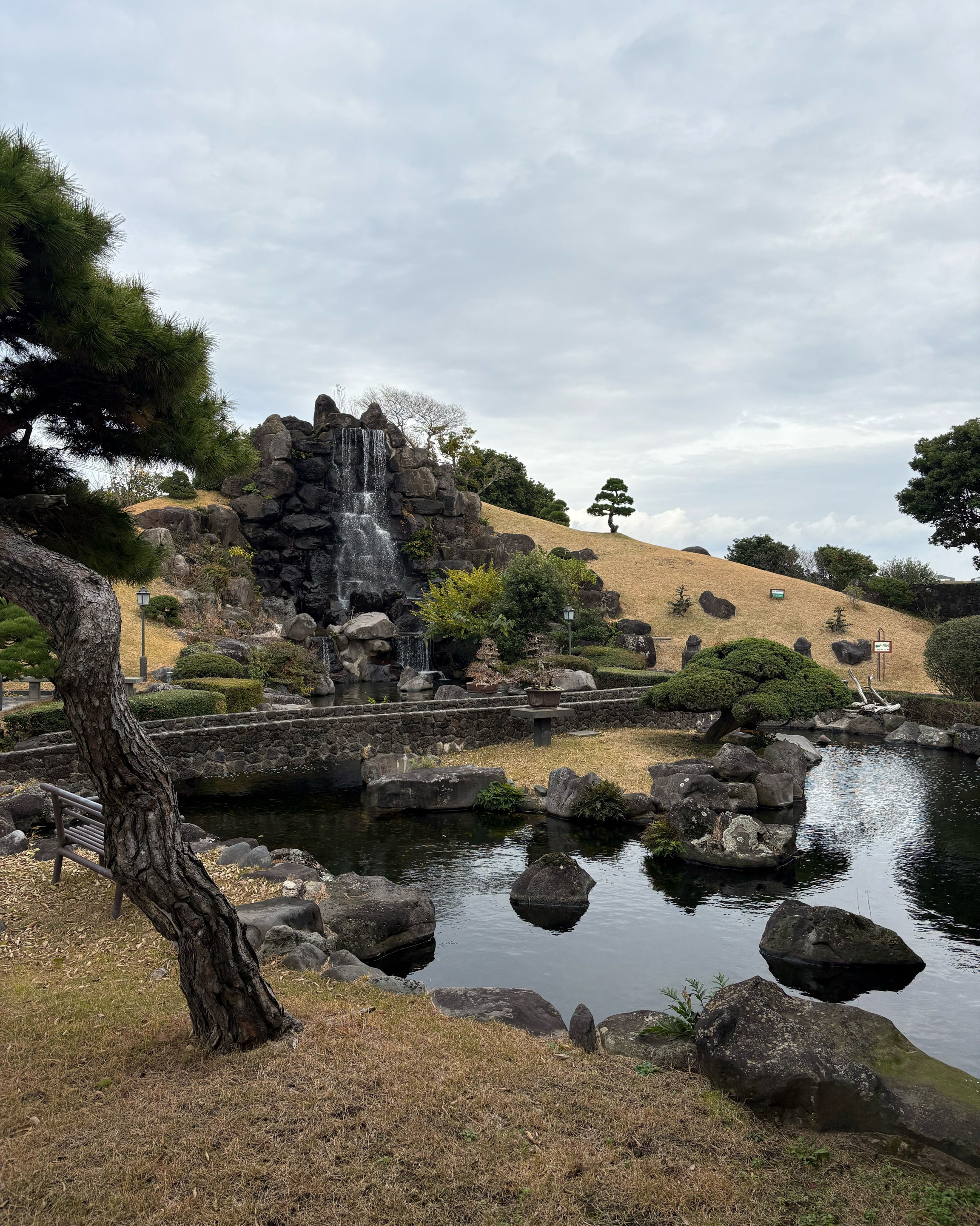 정원은 정말 아름답고 평화로웠습니다. 꽤 넓은 편이었고, 분재 나무, 흥미로운 돌, 연못, 폭포, 그리고 전망대까지 있었습니다. 여유롭게 정원을 둘러보는 데 한 시간 넘게 걸렸습니다. 아주 친절하고 상냥한 주인을 만났습니다.