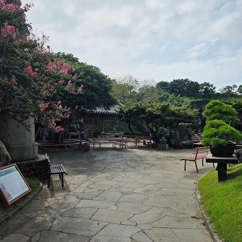 정원은 정말 아름답고 평화로웠습니다. 꽤 넓은 편이었고, 많은 분재 나무, 흥미로운 돌, 연못, 폭포, 그리고 전망대까지 있었습니다. 여유롭게 정원을 둘러보는 데 한 시간 넘게 걸렸습니다. 아주 친절하고 상냥한 주인을 만났습니다.