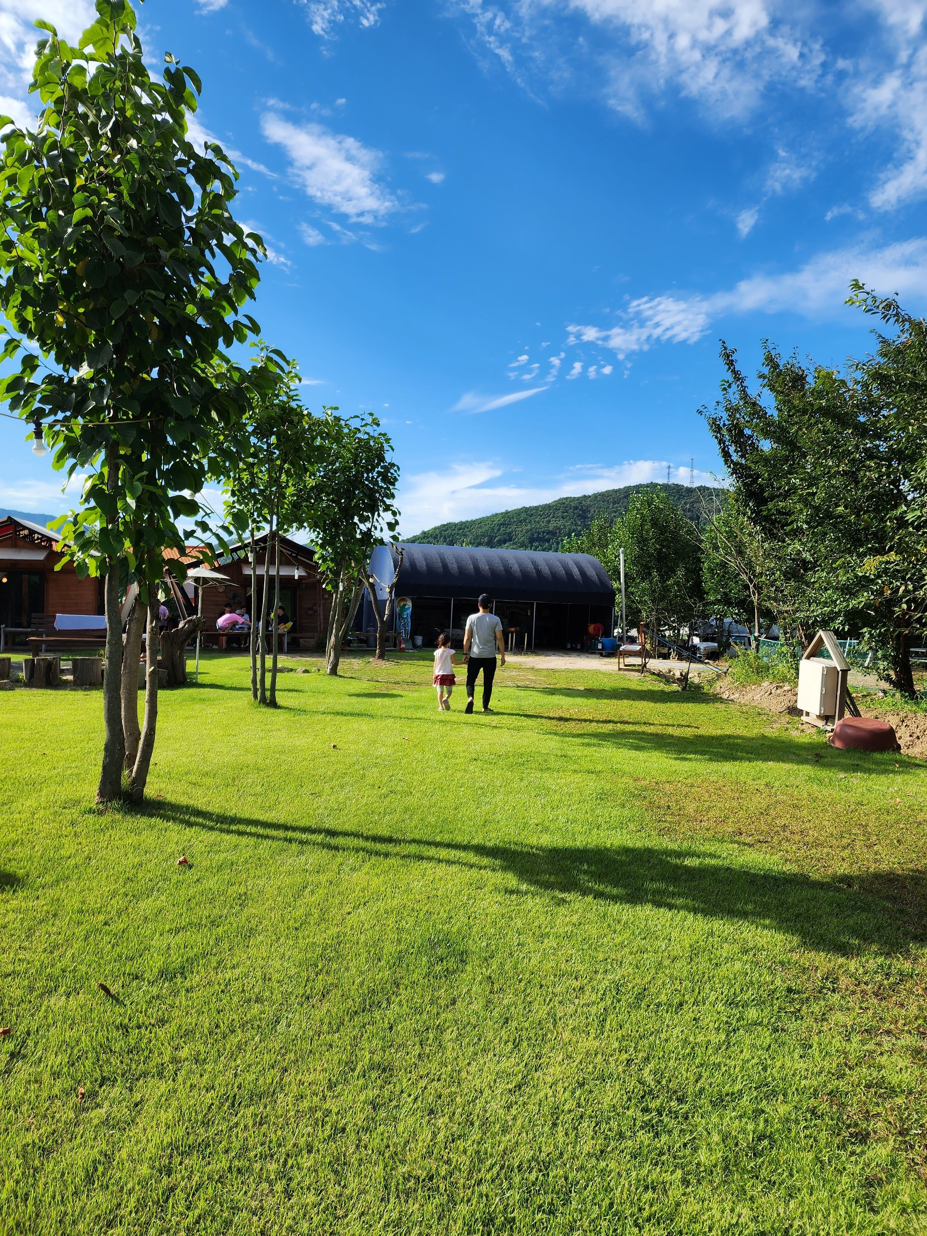 숙소 앞 잔디가 관리가 너무 잘되어있어서 보는것만으로 힐링이었습니다. 수영장도 성인이 놀수있을정도의 넓이와 깊이였어요. 특히 침구류가 냄새하나없이 너무 포근하고 좋았습니다!! 재방문의사 무조건이에요^^