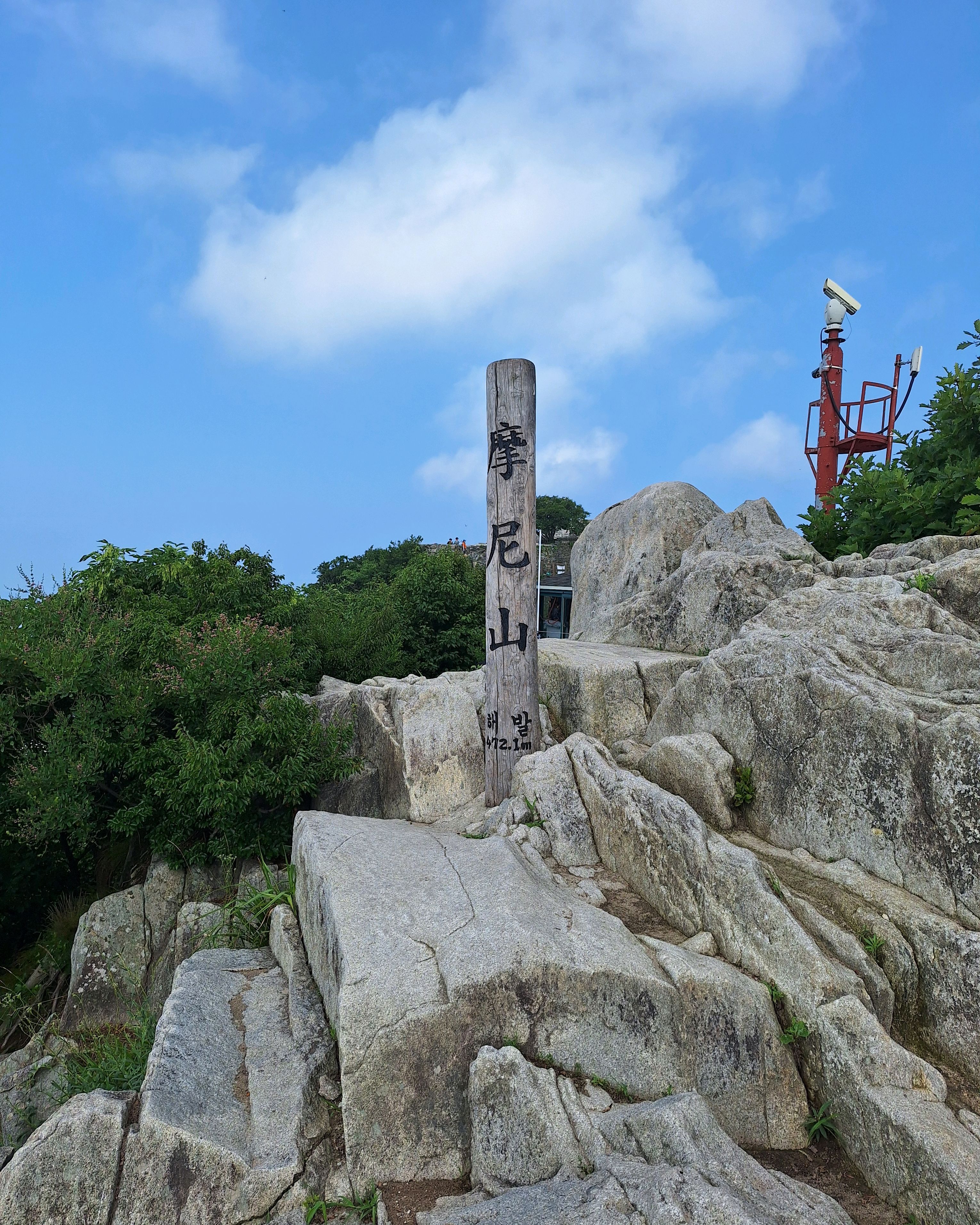 물론 중간에 웅녀계단, 삼칠이계단이 있지만 잠깐이에요! 그리고 후반부 약간의 바위길만 지나면 정상 도착. 쉬엄쉬엄 1시간 반정도 걸렸어요ㅋ 정상에는 작고 동그란 헬기장 같은 평지가 있어서, 바다를 보며 간식까지 먹을 수 있어요. 너무 땡볕이긴 했지만 잠깐이니까요ㅋ 함허동천 쪽 등산로와 서해바다의 뷰는 정말 아름다웠어요. 귀여운 냥이도 많아요ㅋ