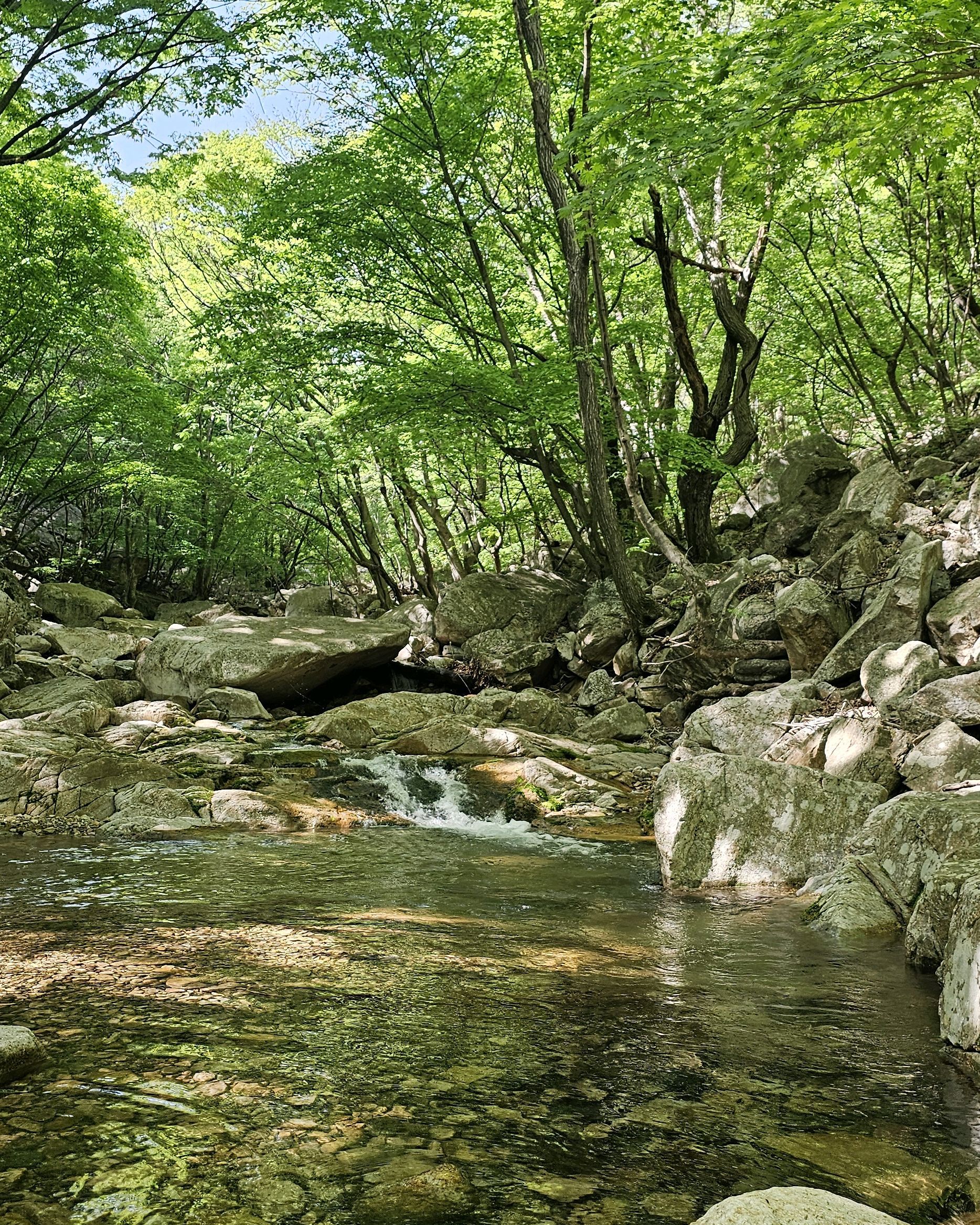 🔍등산후기: 중원계곡으로 올라가는 길이 계곡너덜길, 돌무더기, 작은 암릉구간이 있어, 원형산행하는 반대편 보다는 어려움 있음, 중원폭포 인증사진이나 하산완료 후, 계곡물에 족탕하기 좋음