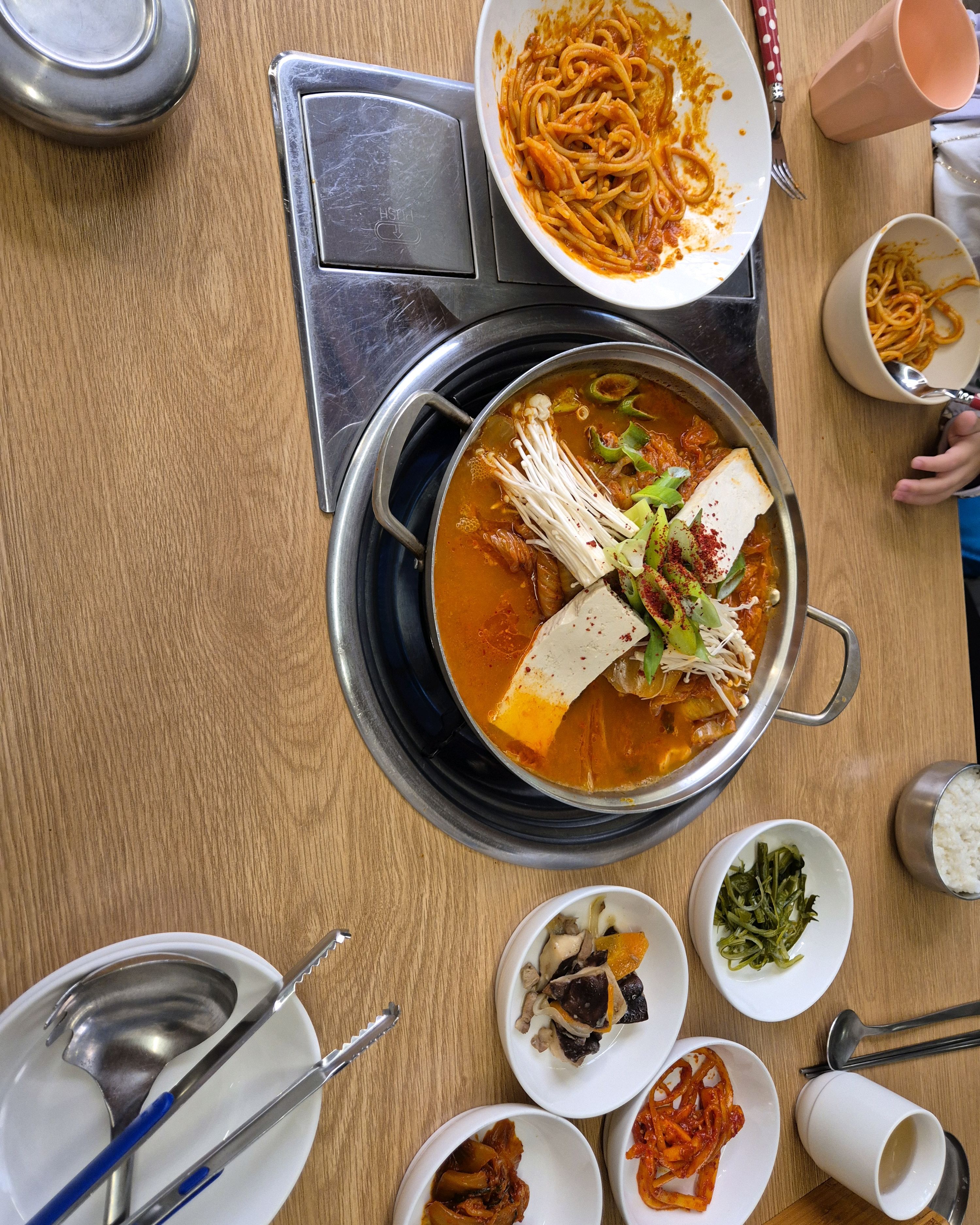 애들 스파게티도 너무 잘 먹고 묵은지가 진짜 끝내줘요