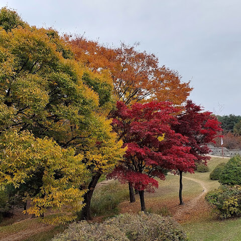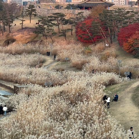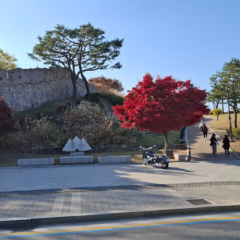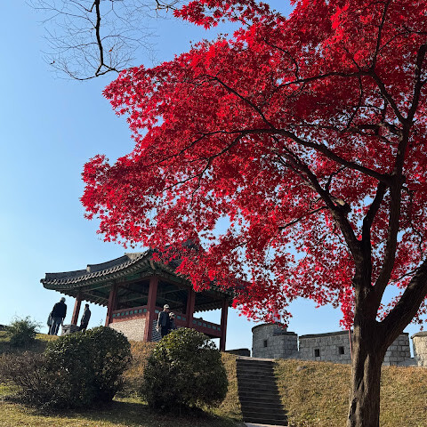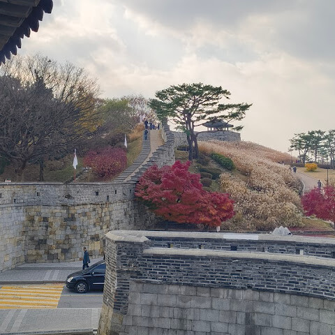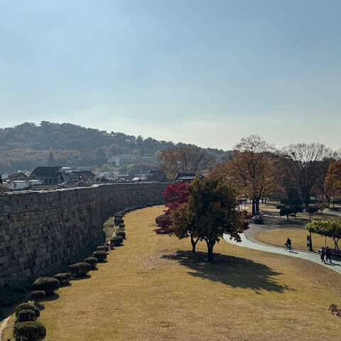 화성 주변을 산책했는데, 아름답고 평화로운 분위기에 가을 단풍도 아름다웠어요.