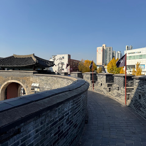 이곳은 정말 멋집니다. 옛 성곽과 성곽 안의 새롭고 세련된 도시가 조화를 이루는 곳입니다. 수원에 꼭 가볼 만한 곳입니다. 관광객이 많지 않고 대부분 지역 주민입니다. 수원 당일치기 여행이 정말 즐거웠습니다.