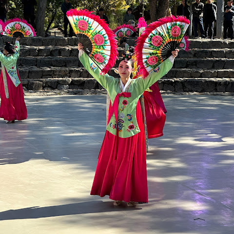 한국민속촌은 꽤 넓은 편인데, 비가 오면 바닥이 진흙으로 뒤덮입니다. 비가 오지 않으면 모래가 많고 고운 모래입니다. 안에서는 승마, 공연, 놀이공원, 해적선, 회전목마, 귀신의 집(정말 지루해요) 등을 체험할 수 있습니다. 다만 놀이공원은 붐비지 않습니다... 많은 식당과 상점들이 문을 닫아서 관광객이 많지 않습니다. 입구 바로 뒤에 있는 식당의 음식은 꽤 맛있고, 주문 기계는 모두 중국어로 되어 있습니다(신용카드만 가능). 팬케이크는 정말 맛있습니다 👌