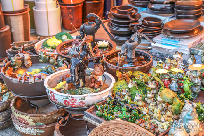 * 여주도 예 단지의 볼거리 * 여주도 예 단지 관광의 장점은 도자기를 보는 것뿐만 아니라 도자기 제조과정을 직접 확인할 수 있다는 것. 단지 내에 여주 민속 도자기 조합과 도자기 종합전시관 외 60여 개의 개인 전시관이 있어 다양한 도자기를 관람할 수 있으며, 각 도요지마다 도자기의 제조 과정을 볼 수 있다. 또한 매년 5월에는 세종대왕 숭모제전과 함께 여주 도자기 박람회를 실시하여 색다른 관광 기회를 제공하고 있다. 그리고 주변에 신륵사 국립 관광지, 세종대왕릉(영릉), 효종대왕릉, 명성황후 생가, 영월루, 목아 불교 박물관 등의 관광지가 있어 연계 관광으로 좋다. 이곳 부근엔 신륵사 국민 관광지와 영릉, 고달사지 등 문화 유적지가 많아 학생들의 문화유적 탐방지로 적합한 곳이다.