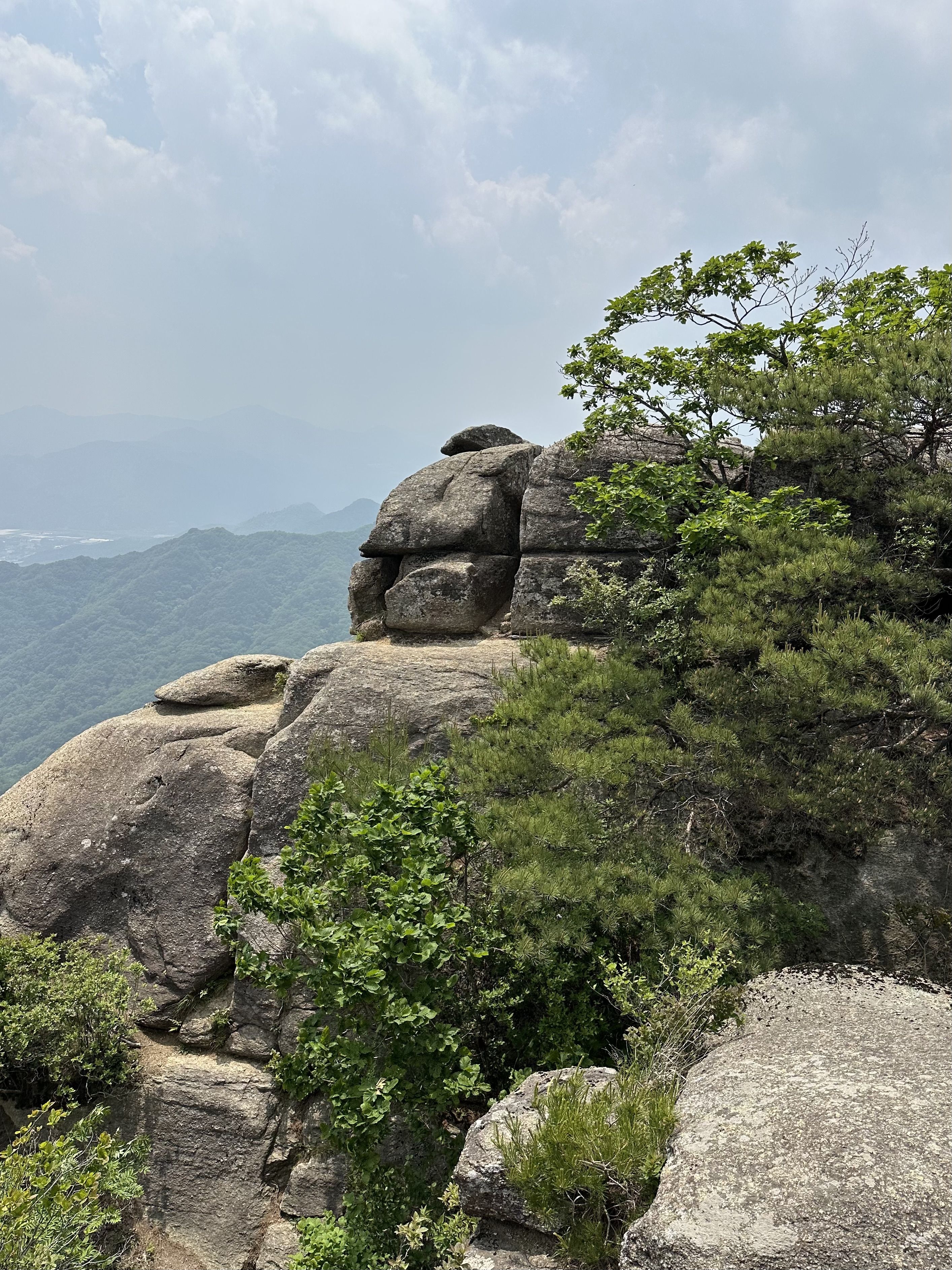 정상석에서 소나무가 있는 바위를 오르니 더 멋진 뷰가..