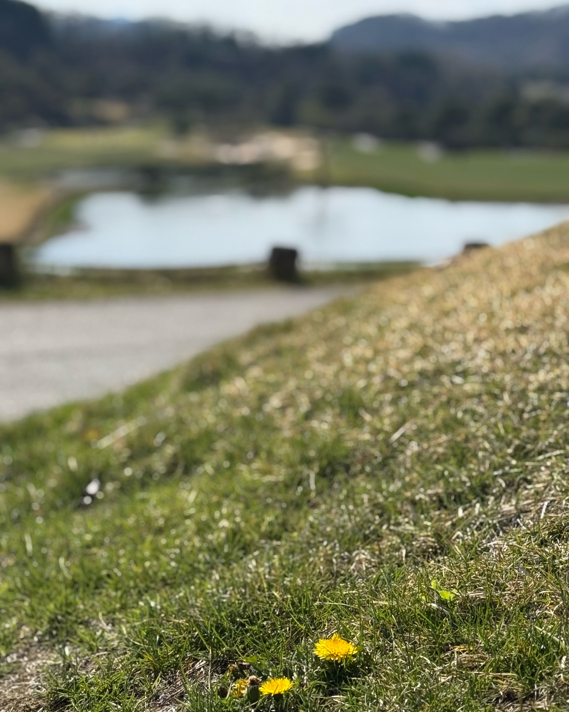 봄에 꽃으로 가득한 산.. 주변에 시설 많음