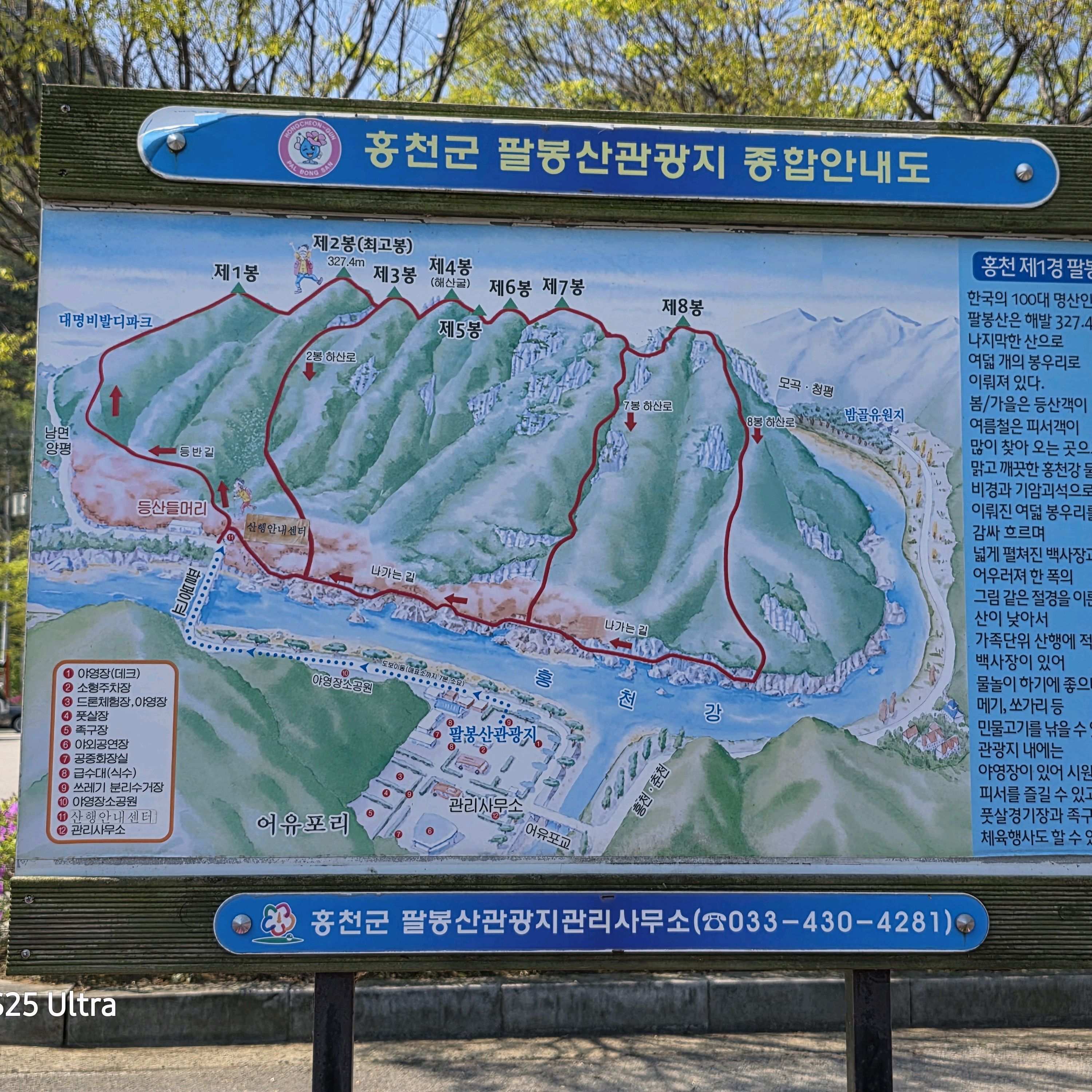 팔봉산 관광지 주차장-홍천교-매표소-1봉~8봉-홍천교-팔봉산 관광지 주차장