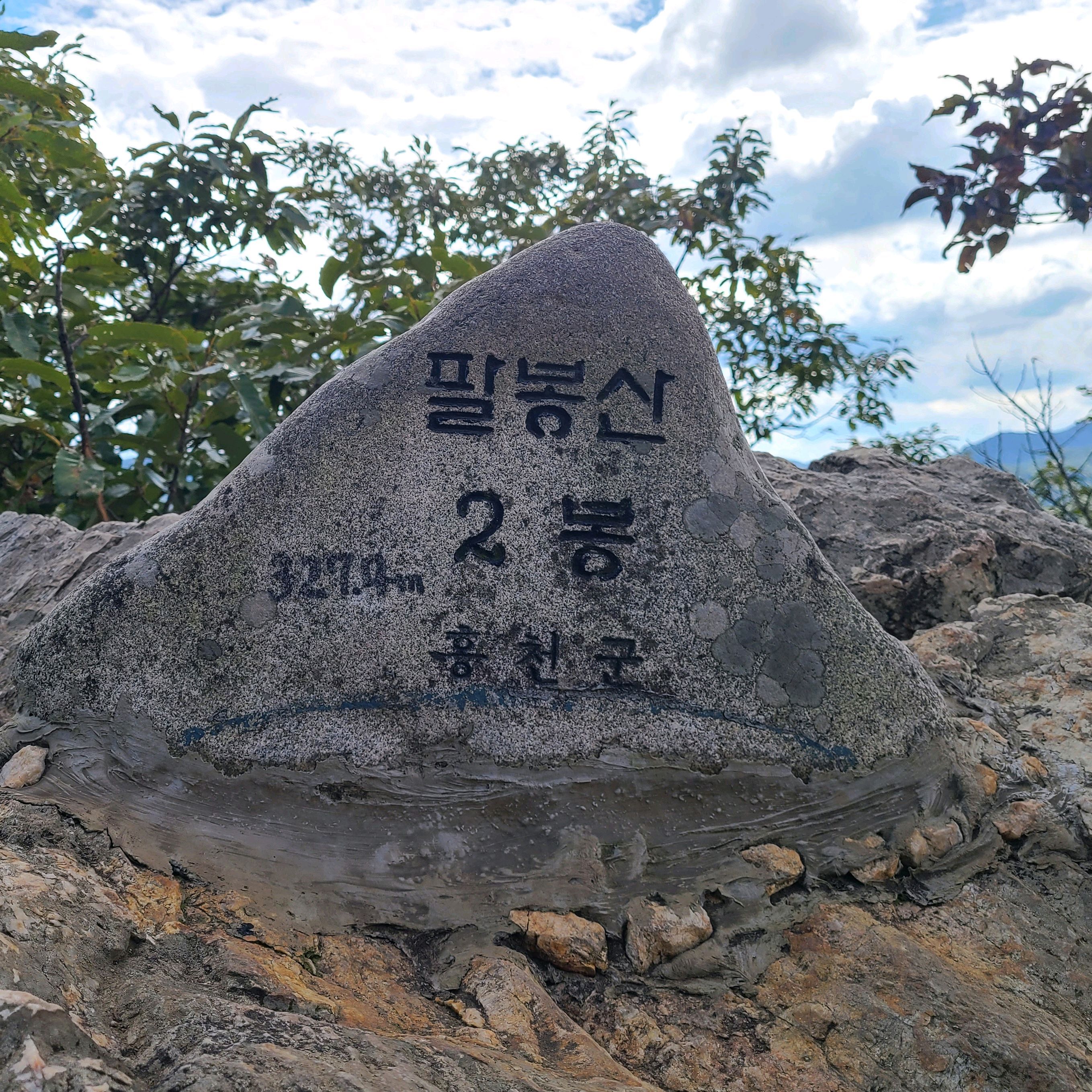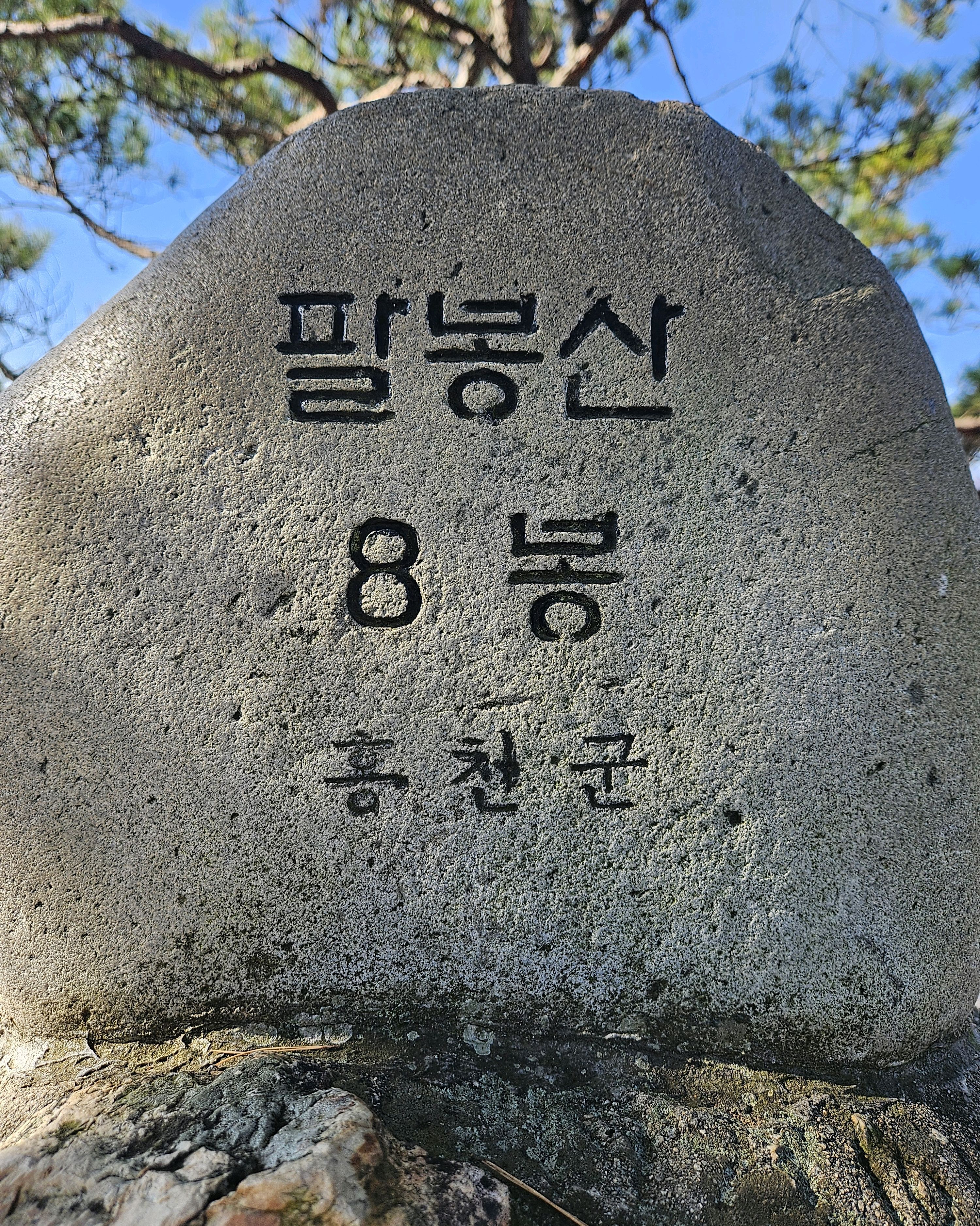 팔봉산 2봉 정상석 (2024.10.03). BAC 인증은 여기서 하시면 되겠습니다. 정상석 크기가 작으니 잘 살펴서 찾아보세요. 암릉과 경사로가 오르기 조금 까다로울 수 있으니 비나 눈이 오는 날에는 조심해서 오르실게 아니라... 아예 안 오르시는게 좋겠습니다. 😀