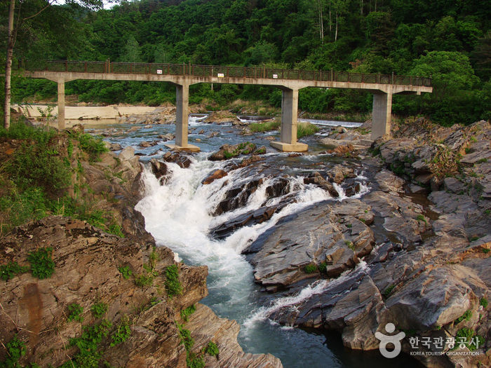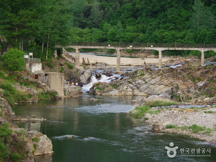 물줄기가 곧바로 떨어져 직연폭포라 부르게 되었으며, 주변에는 높이 약 20m의 암벽이 병풍을 둘러친 것처럼 아름다운 경치를 드러내고 있다. 폭포 아래에 위치한 직연소는 깊이가 20m나 되고, 붕어, 잉어, 메기, 꺽지, 버들치, 갈겨니 등 주로 물 맑은 하천, 호수 등에서 서식하는 어종이 많다. 여름철에는 많은 사람들이 물놀이를 즐기러 찾는 인기 명소이기도 하며, 산책로와 등산로가 마련되어 있어 다양한 활동을 즐길 수 있다. 인근 관광지로는 방산수변공원, 양구백자박물관, 방산자기박물관, 두타연계곡, 백석산지구 전투전적비 등이 있다.