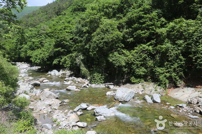 상원산과 가리왕산을 휘감고 돌아가는 오대천 하류에 숙암계곡이 펼쳐진다. 숙암이라는 이름은 옛날 어느 원님이 하룻밤을 묵어갈 민가조차 없어 바위에서 노숙을 했다는데서 유래되었다. 강변길이 드라이브코스로 널리 알려진 이 계곡은 봄마다 철쭉 군락의 연분홍 꽃물경이 절정을 이루며 특히 숙암샘터의 가리왕산 샘물은 차고 깨끗한 생수이다.