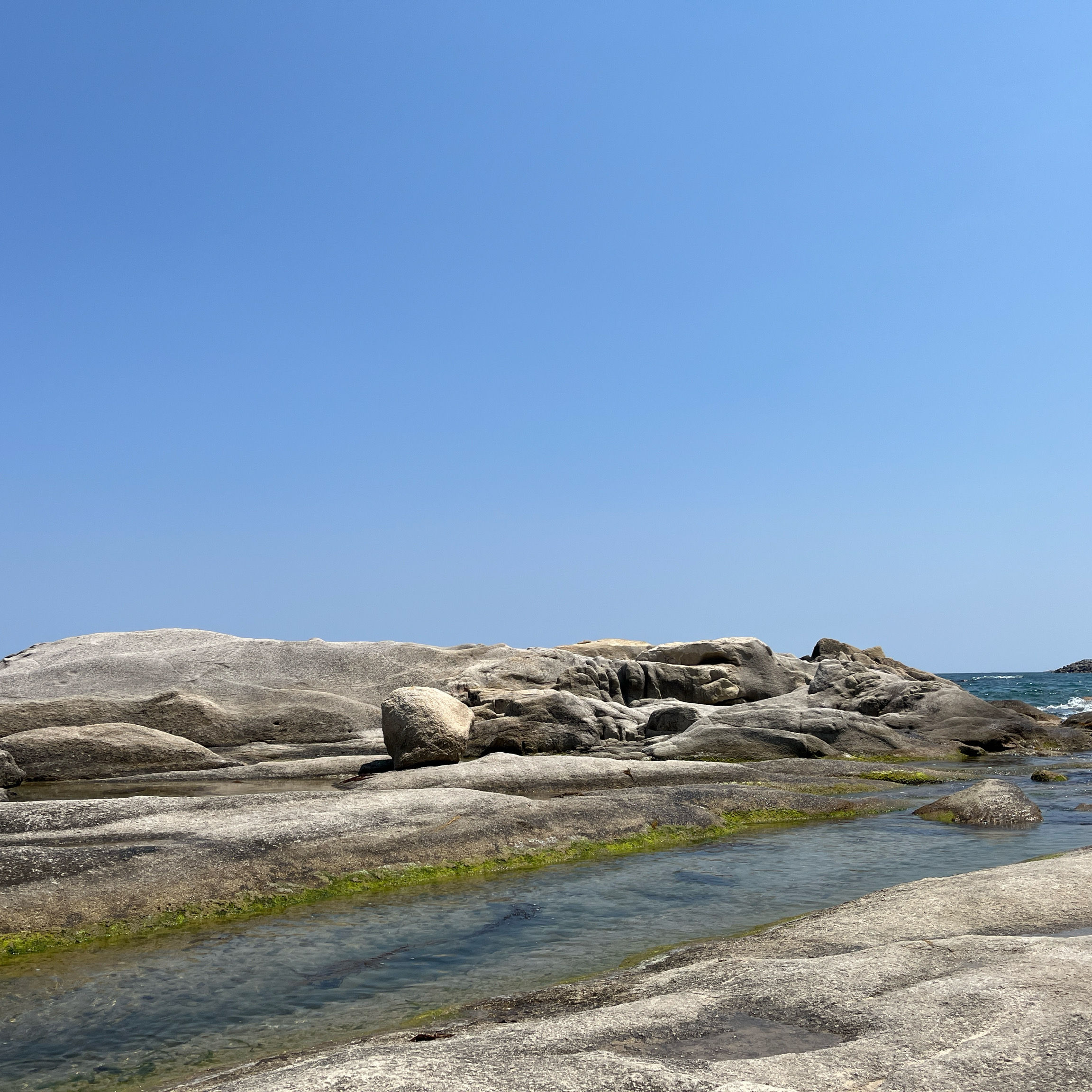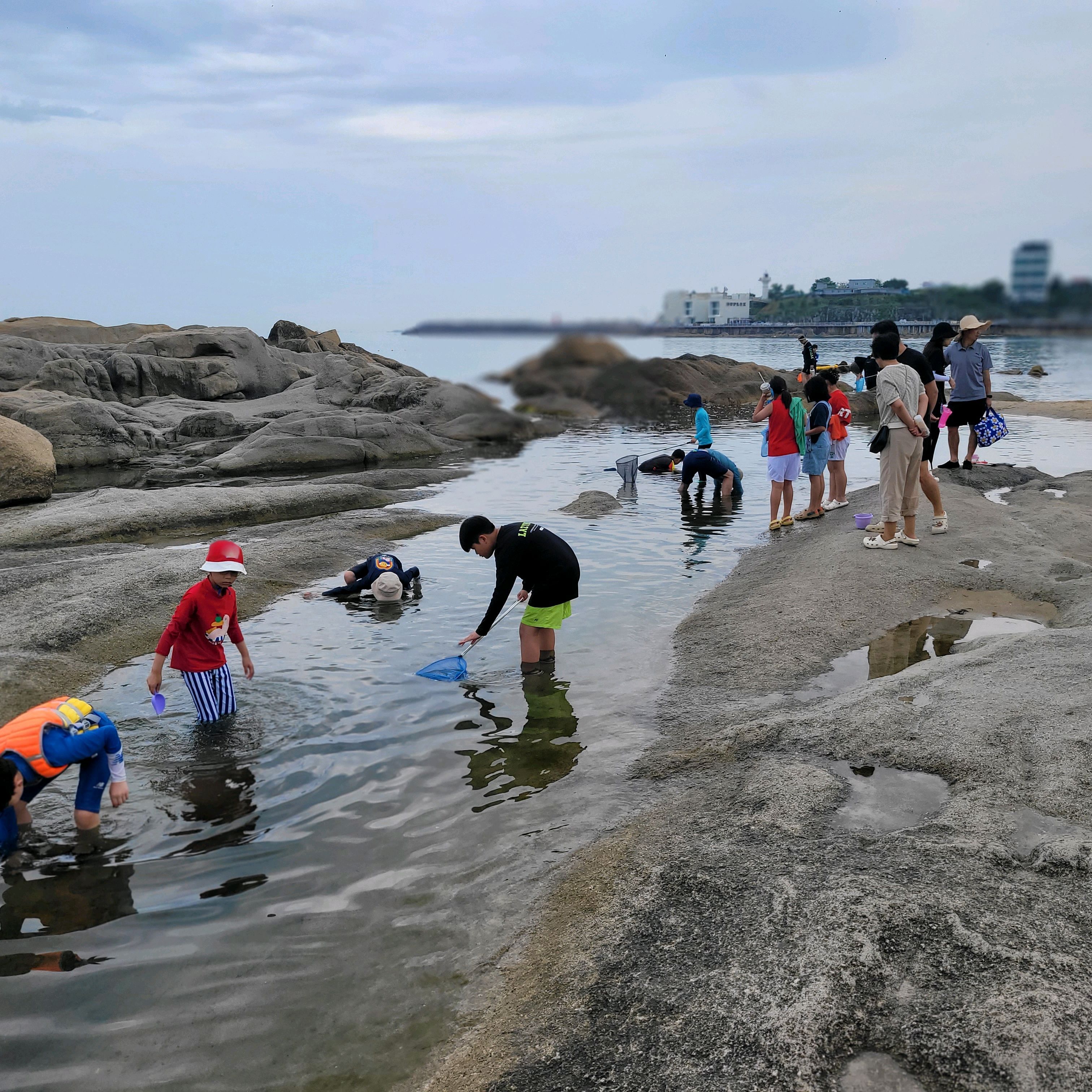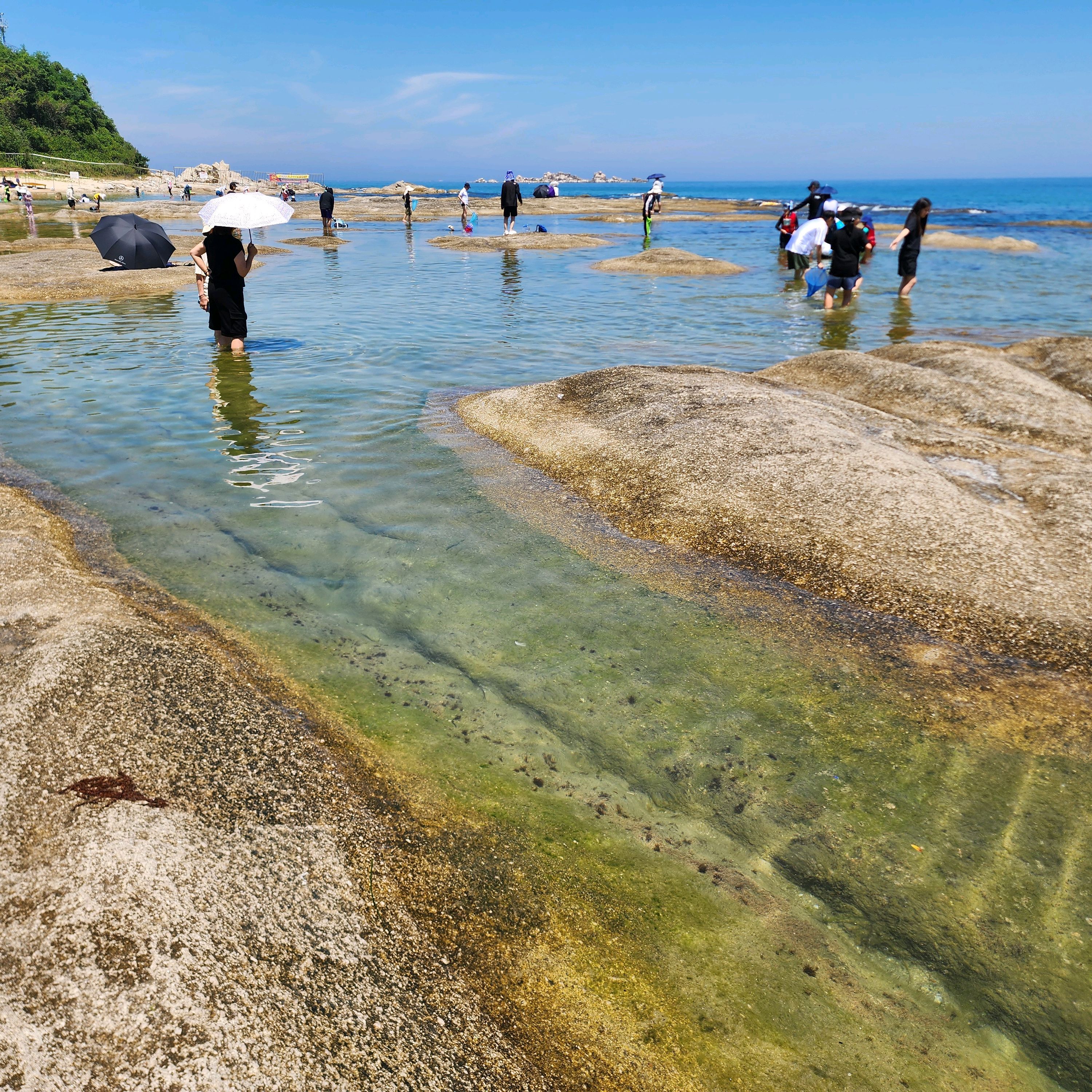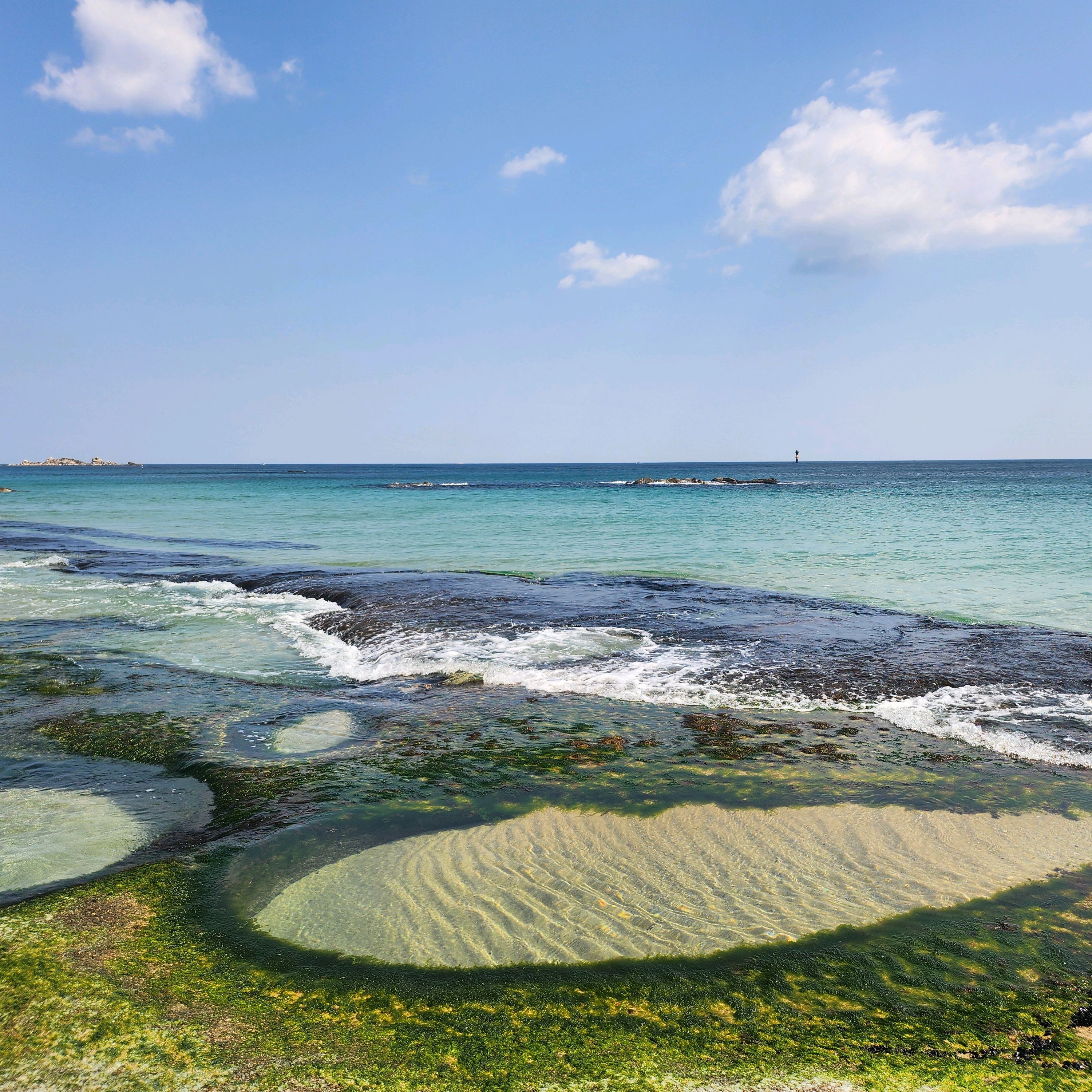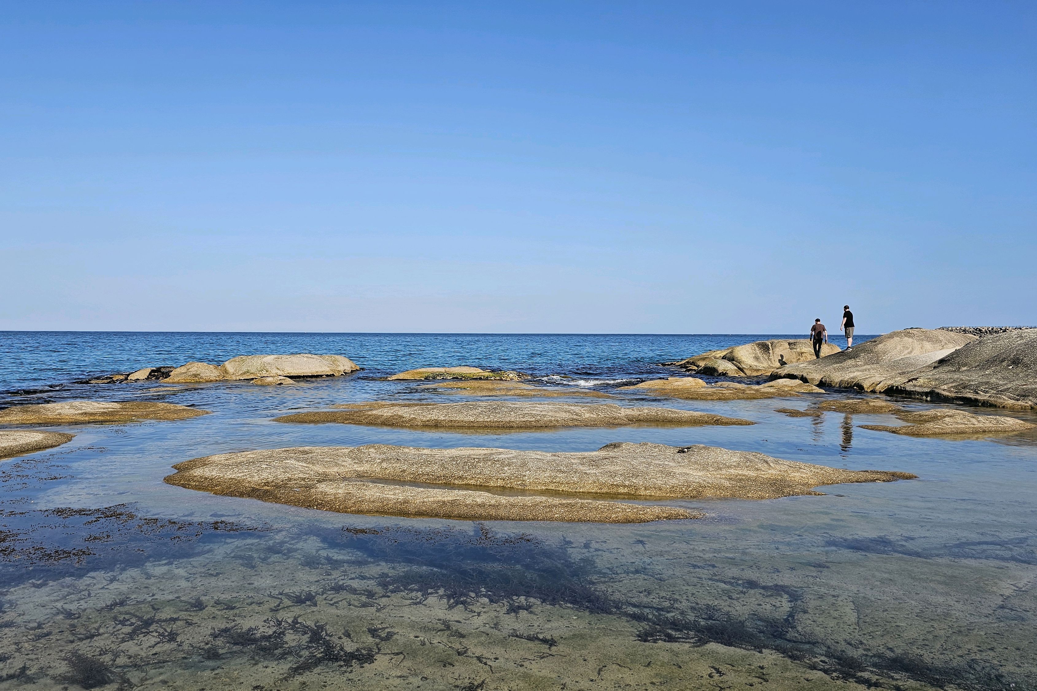 |  해변에 돌로 된 얕은 바다가 있고 멀리까지 얕은 모래사장이 있어서 아이들과 물놀이 하기 좋아요 2025년 08월 01일 |