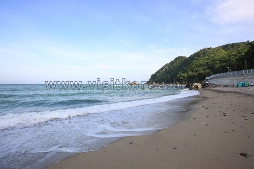 삼척시내에서 남쪽으로 35㎞ 정도의 거리에 위치하고 있다. 백사장 길이 200m, 폭 50m 크기의 아담한 해수욕장으로 뒤쪽에는 소봉산정과 해안동굴로 손꼽히는 화방굴 및 소공대비가 절경을 이루고, 그 옆에 임원천이 흘러내려 담수 조건도 좋다. 인근에는 전국적으로 유명한 임원항이 있어 싱싱한 활어회를 싼값에 즐길 수 있으며 활어회 외에 오징어, 가오리, 가자미 등을 비롯한 건조해산물이 다양하게 판매되고 있어 제수용 등으로 구입이 용이하다. 임원항 방파제에는 전국 제일의 감성돔 낚시터가 마련되어 있어 바다낚시를 즐기러 오는 강태공들이 많다. 물이 맑고 깨끗하며 수심이 낮아 스노클링 하기에 적당하고 화장실, 샤워장, 넓은 주차장등 편의시설이 비교적 잘 갖추어져 있어 캠핑을 즐기러 오는 사람들도 많다.