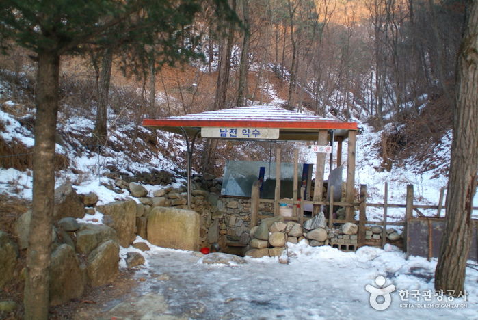 남전약수는 남면 남전리 국도변 양지바른 기슭에 자리잡고 있다. 이 지역은 옛부터 쪽풀이 많아 쪽밭골로도 불리고 있는데 약수는 현재 이곳을 관리하고 있는 사람에 의해 1969년 발견되었다. 이 약수는 철분을 함유하고 있는 것으로, 많은 사람들이 약수를 복용하고 배탈이 나았다고 알려지면서 계절을 가리지 않고 각지에서 관광과 소양호 낚시를 겸하여 찾고 있는데 약수에 설탕을 넣어 시판되는 청량음료 못지않은 맛을 나타낸다.