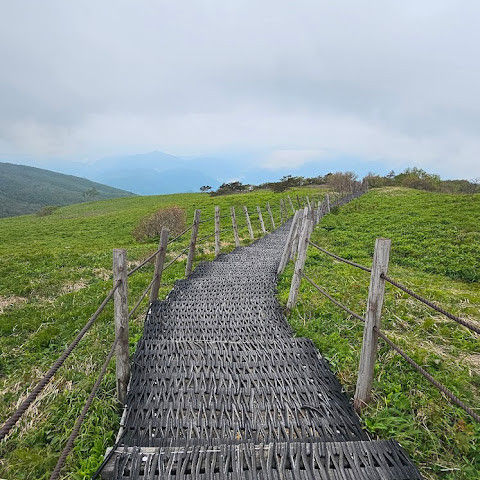 정상에서 보는 능선이 정말 멋진 곳.누군가는 스위스 알프스를 생각나게 한다고 해요 비로봉 주변에서 보는 정상의 고위평탄면과 푸른 능선은 가슴이 맑아지게 해요. 삼가탐방로로 올라와서 희방사탐방로를 이용했고 삼가탐방로는 소백산정상전에 나오는 마지막 급경사계단이 제일 힘든 구간.비로봉에서 연화봉까지는 능선타고 가는 길이라서 쉬엄쉬엄가면 연화봉에 도착해요 희방사코스는 짧지만 급경사구간이에요