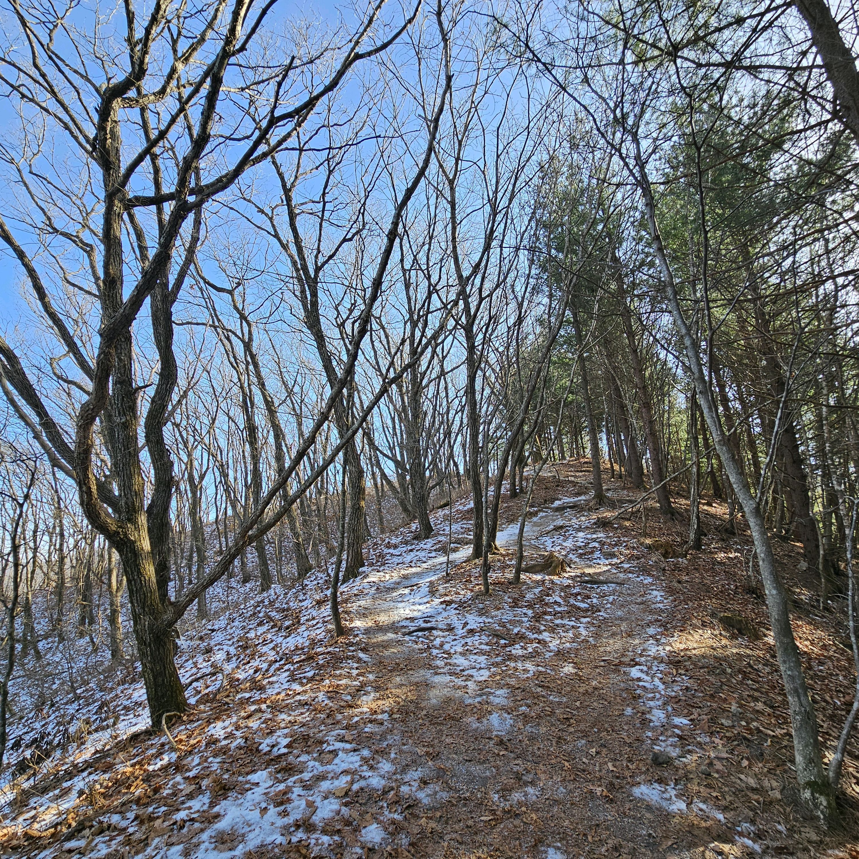 겨울 산행시 아이젠은 얼음 시작될 때 바로 끼고, 하산 입구 보일 때까지 하는 게 좋음. 계곡 따라 길도 얼어있음. 절대 아이젠, 스틱, 장갑 필수. 아이들도 등산화에 아이젠.. 다이소 도시형 아이젠 안됨.