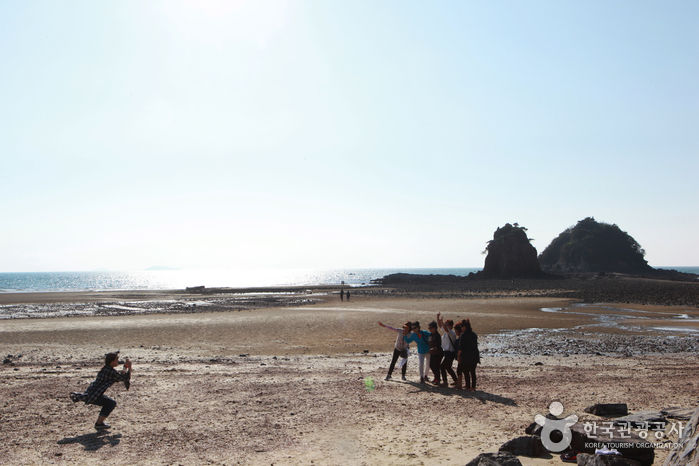 * 할미, 할아비 바위의 전설 * 9세기 중엽 장보고가 청해진에 주둔해 있을 때, 안면도에 승언이란 장군이 지휘관으로 파견되었다.그 장군에게는 아름다운 부인이 있었고, 부부 사이의 금슬이 매우 좋았다. 주변 사람들이 이들의 금슬을 부러워하며 시기하자, 장군은 바다 위에 있는 2개의 바위섬에 집을 짓고 부인과 떨어져 살았다. 그러던 중 장군이 먼 곳으로 원정을 나가 돌아오지 않자 그를 그리워하며 기다리던 부인은 바위가 되었고, 이후 부인 바위 옆에 또다시 바위가 생겨나 사람들이 두 바위를 '할미 할아비 바위'라고 불렀다.