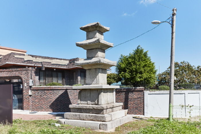 이 유물들은 고려 말에 큰 사찰이 있어서 대사동이란 동명까지 붙은 곳에 위치하고 있는 일명 대사동탑이라는 삼층석탑과 당간지주다. 현재 석탑의 총 높이는 5m 이며, 이중기단과 탑신과 옥개석을 갖추고 있다. 각층 탑신에는 우주가 모각되어 있으며, 옥개석은 4단 받침에 전각의 반전이 있는 개석이다. 상륜부는 남아있지 않다. 또한 이 탑과 같은 장소에 있는 당간지주는 탑과 같은 시대에 조성된 것으로 추정되는데 두 지주가 마주 서 있으나, 기단석의매몰과 유실로 상태를 확인할 수 없다. 또한 두 지주의 높이가 각기 달라, 한쪽은 3.96m 이고 다른 한쪽은 3.81m 이다. 정상부가 파손돼 없어져, 총 높이가 동일하지 않게 된 것으로 보인다.