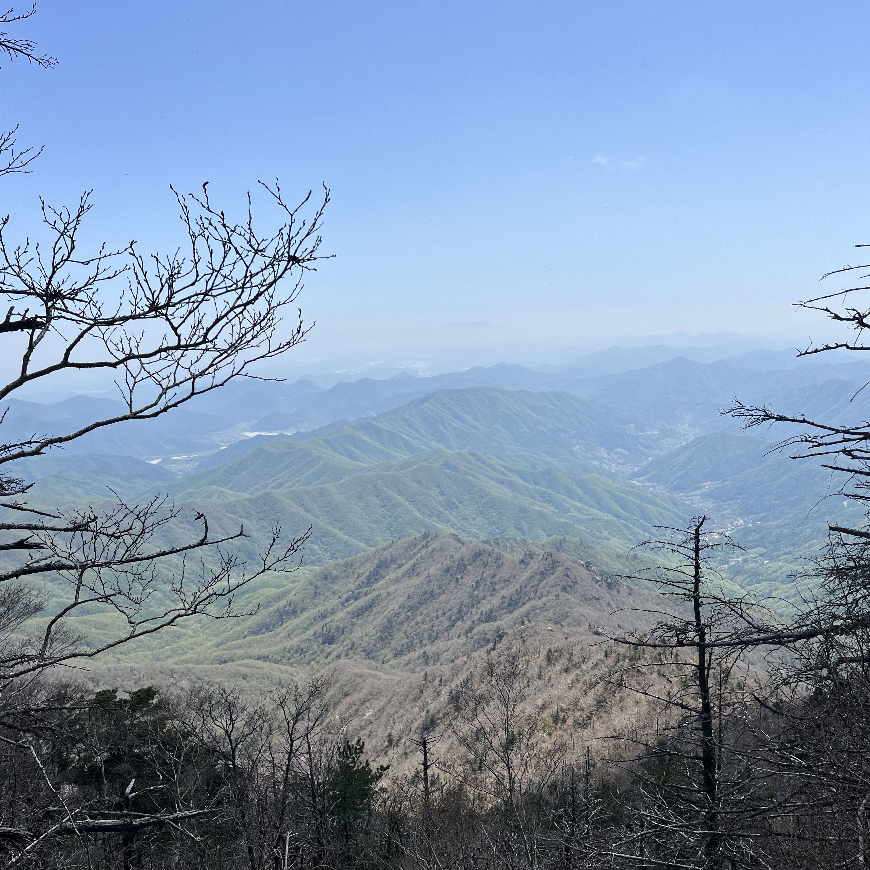 그리고 천왕봉에서 남쪽으로 바라봤는데 바다와 여러 섬의 조화는 마치 스케치북에 물감을 풀어놓으면 기분이었고 북쪽을 바라보니 산들이 파도처럼 무리지어 있었어요.
