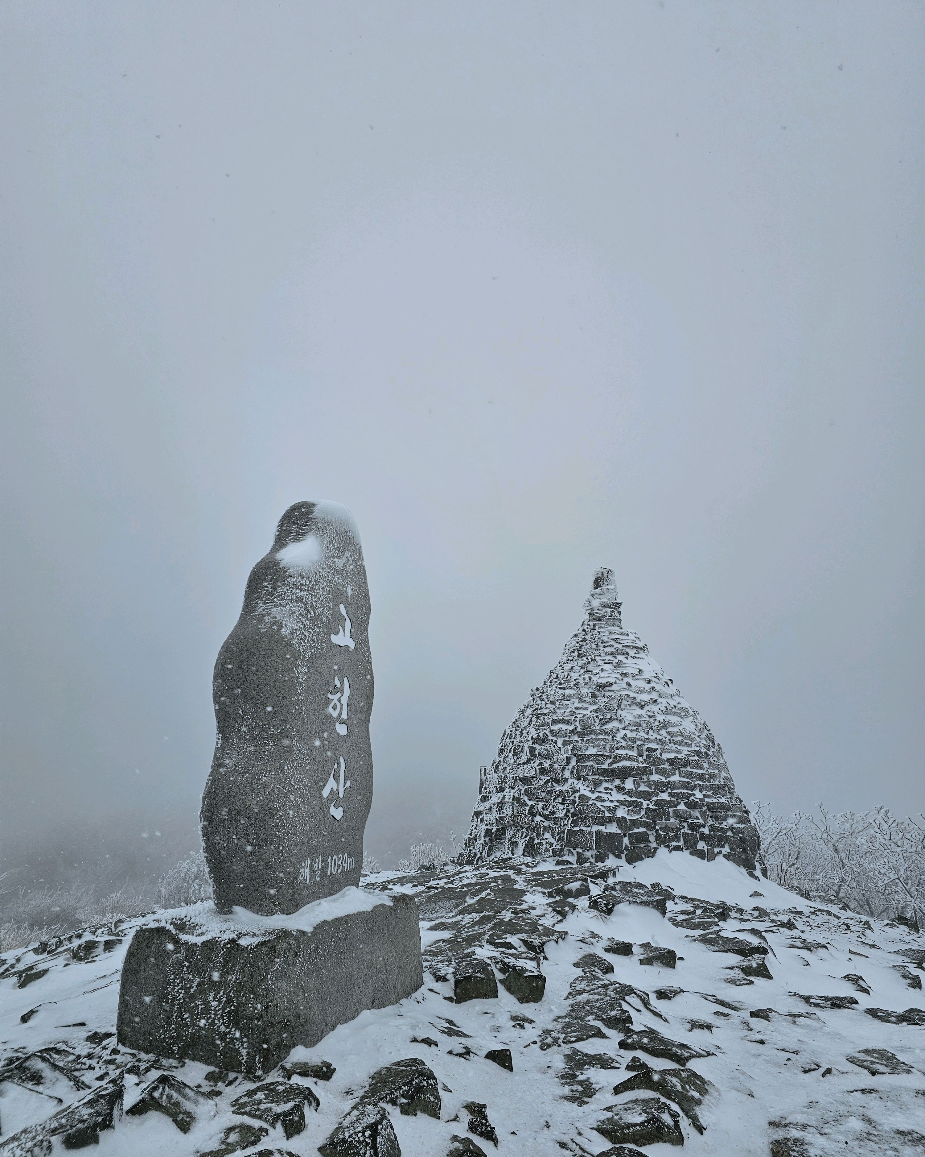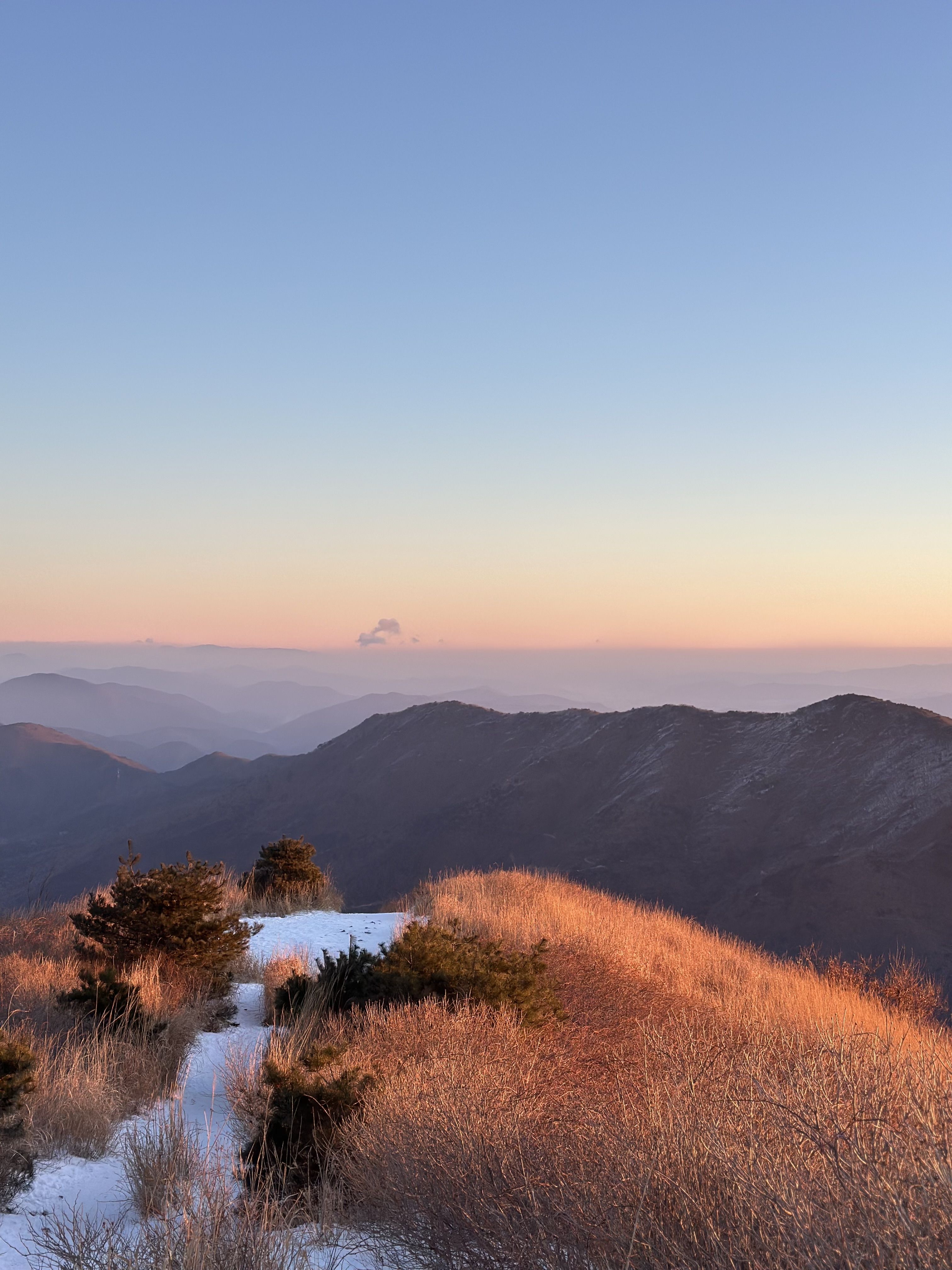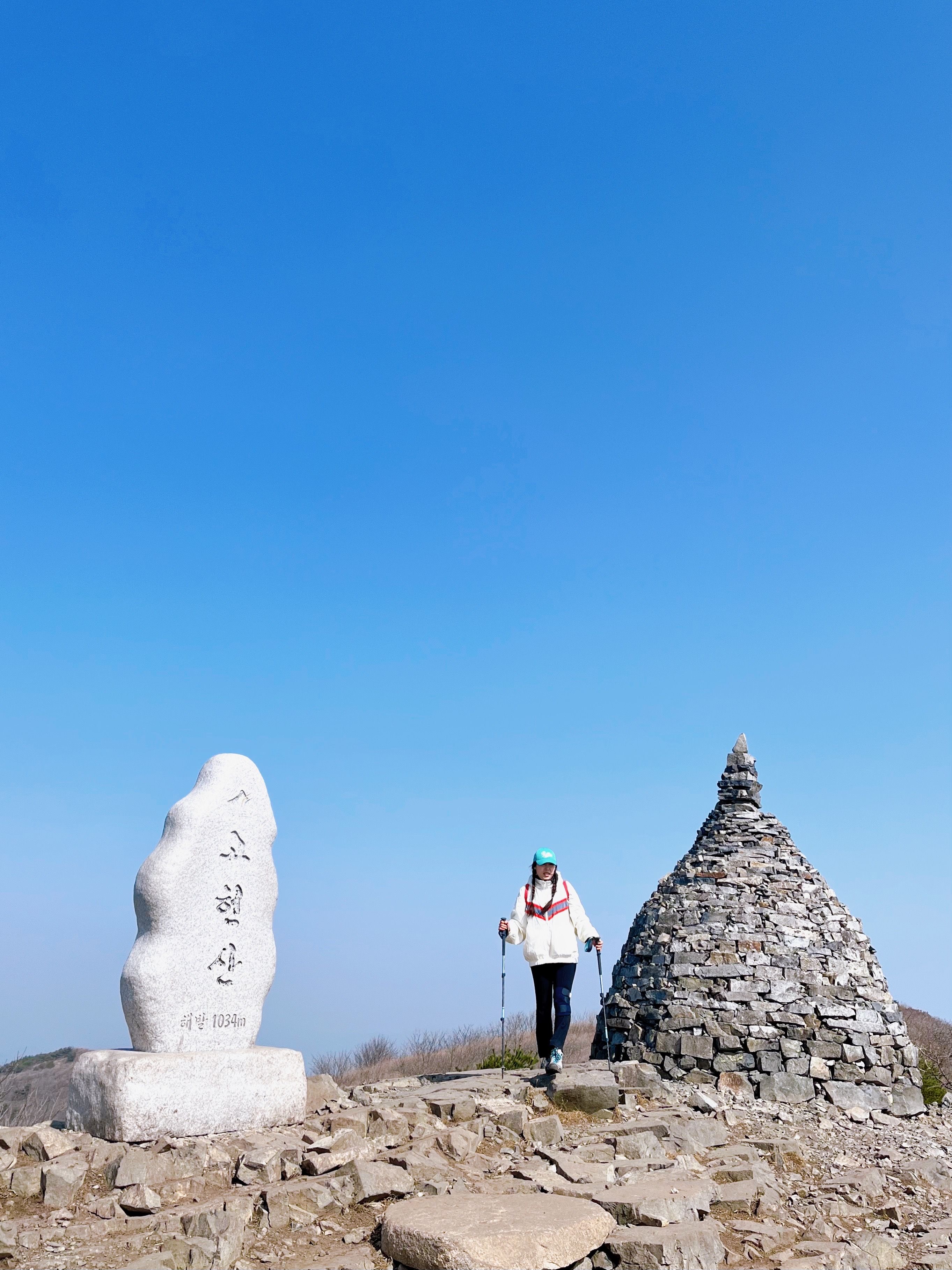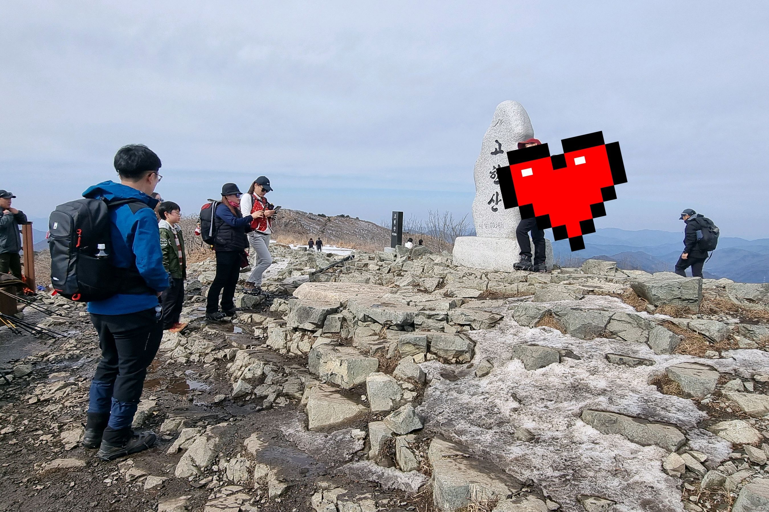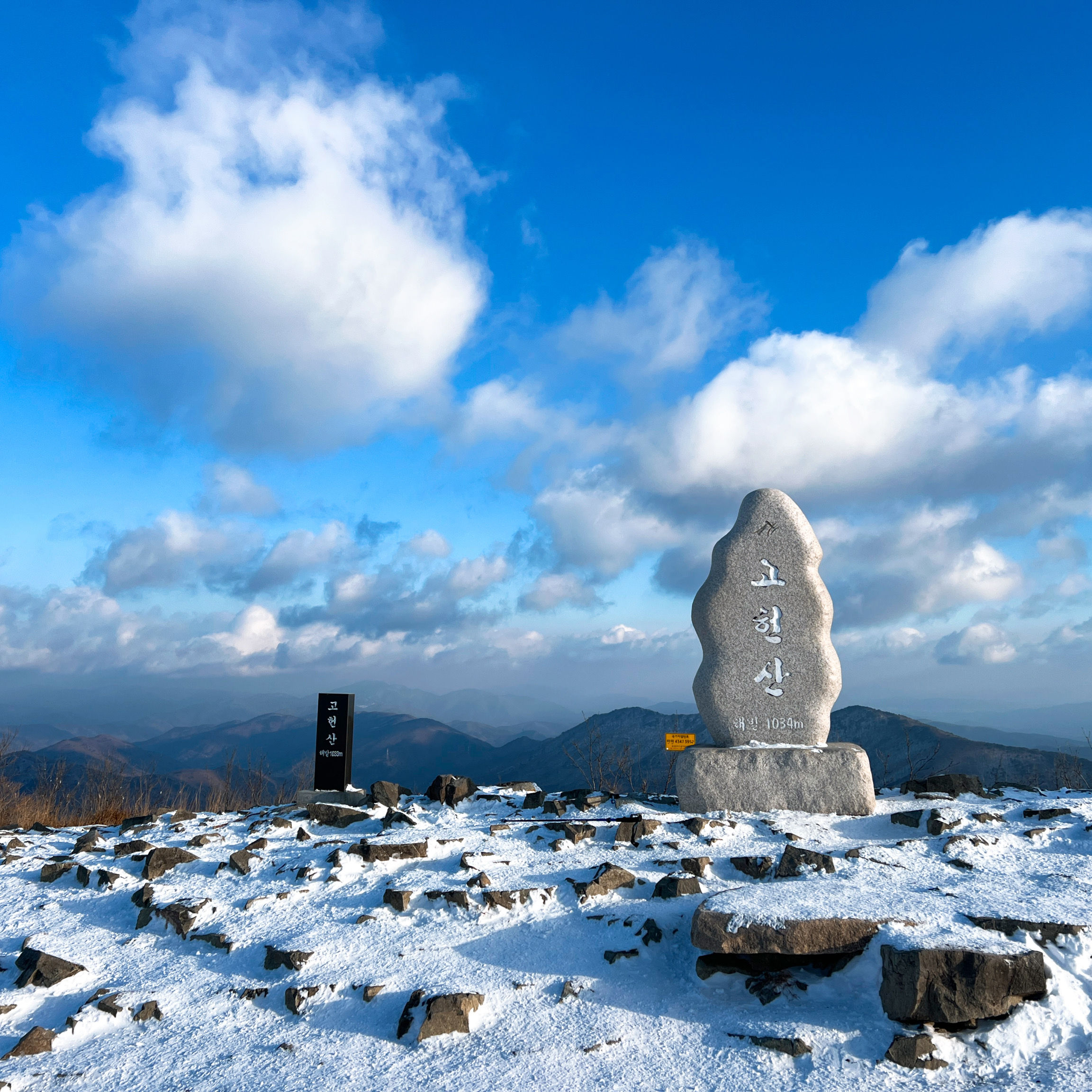험하지 않고~쉬엄쉬엄 올라가기 좋은곳이었어요~ 정상에 다다를때쯤 눈이 녹은 자리가 조금 미끄러웠지만~ 올 겨울 눈구경 실컷 했어요~ 적당히 힘들게 올라간 고헌산 정상에서 내려다보이는 경치는 정말 멋있더라구요. 경주 황리단길도 보이고~먼 바다 운해까지 산행하는 재미가 좋았어요