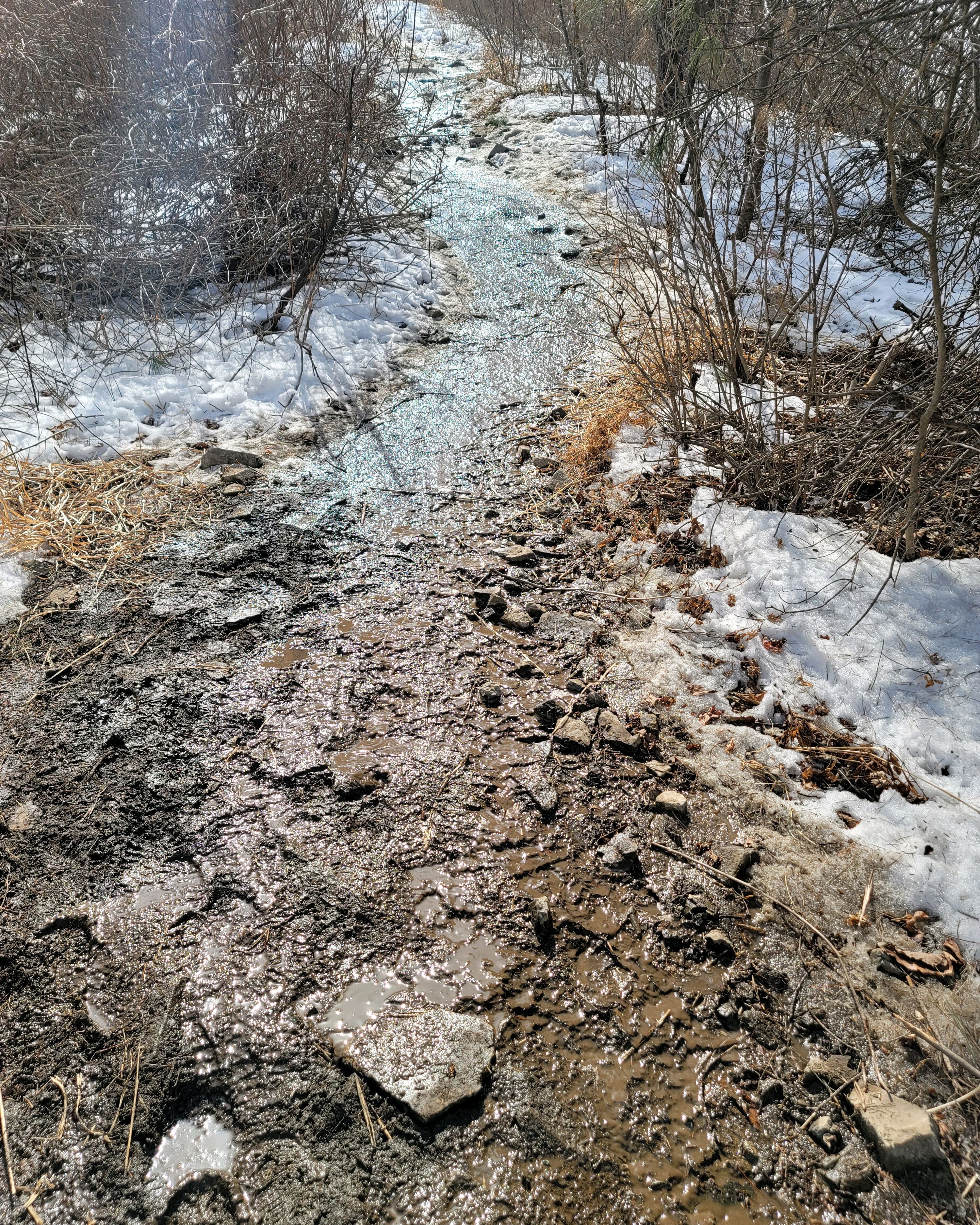 20여분 오른후 눈이 녹은 진흙길과 돌무더기 길이